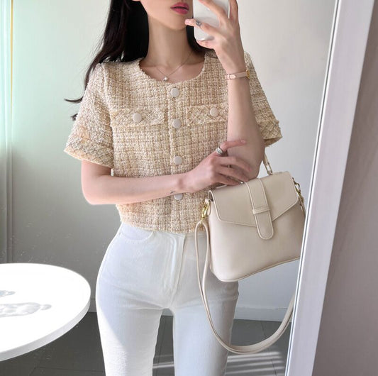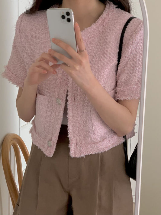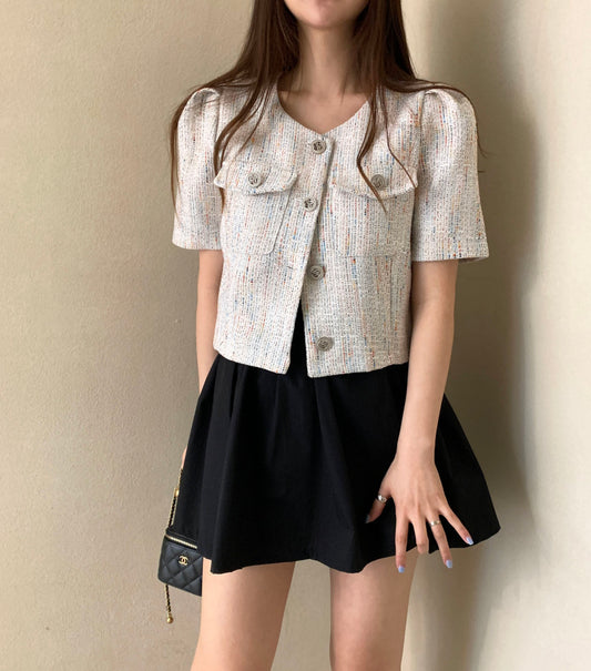 スツイード半袖ショートジャケット