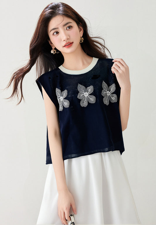 ネイビーカラースリミングトップ