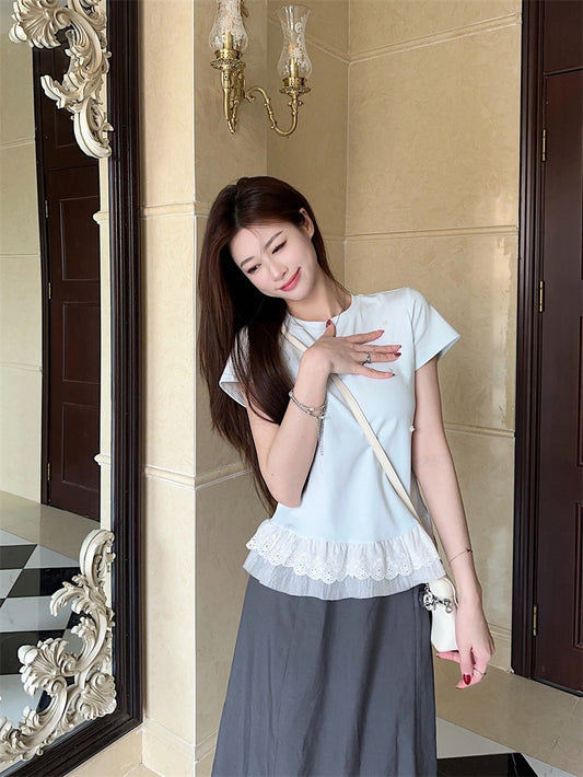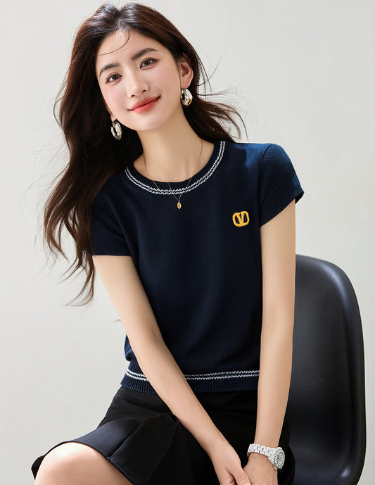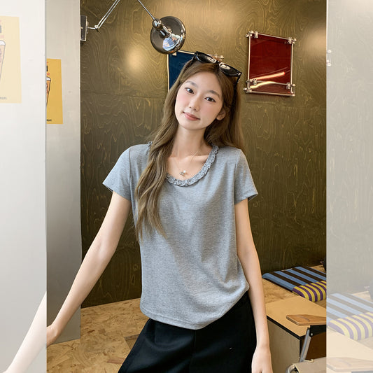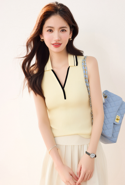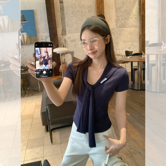 夏の韓国ファッションラペルTシャツ