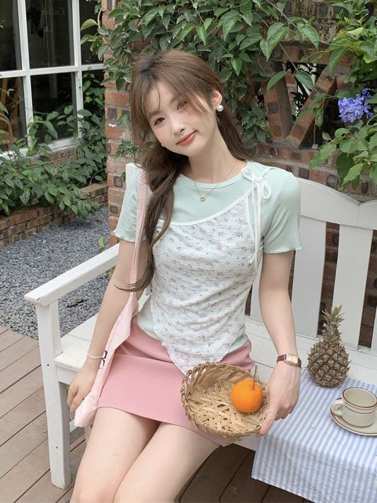 フローラルフェイクツーピースTシャツ
