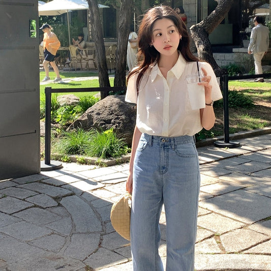 韓国夏レトロワークウェアシャツ