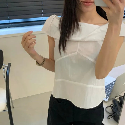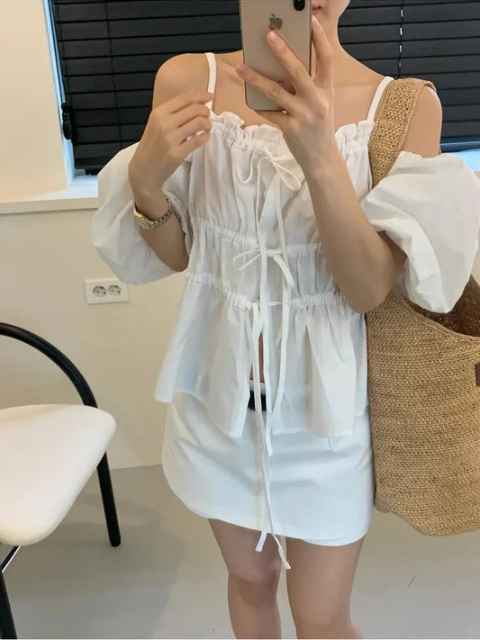 オフショルダーストラップ付きシャツトップ