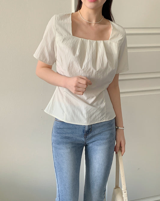 スクエアネック半袖オールマッチシャツ