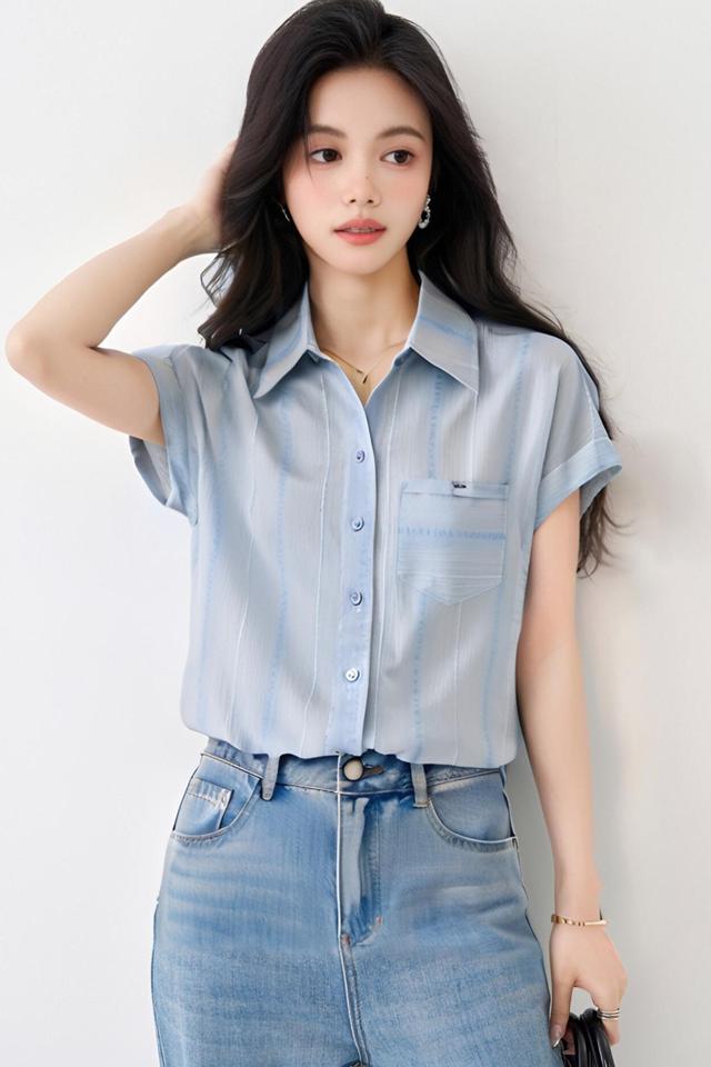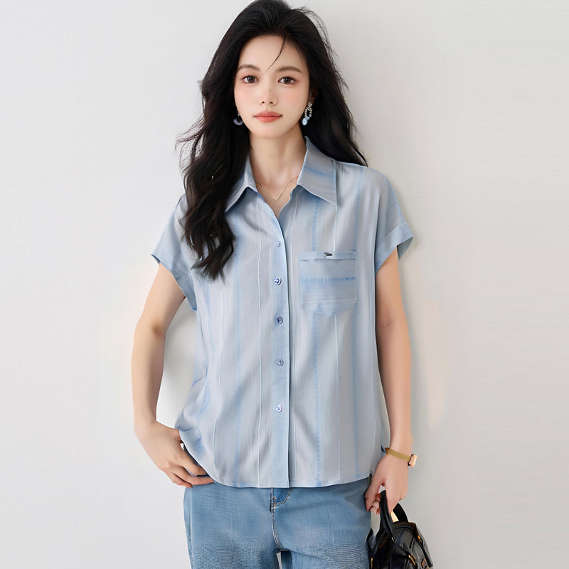 出荷済みシャツ、女性用デザイン、ニッチ、2025年夏、新作韓国スタイル、ルーズ半袖シャツ、多用途トップ