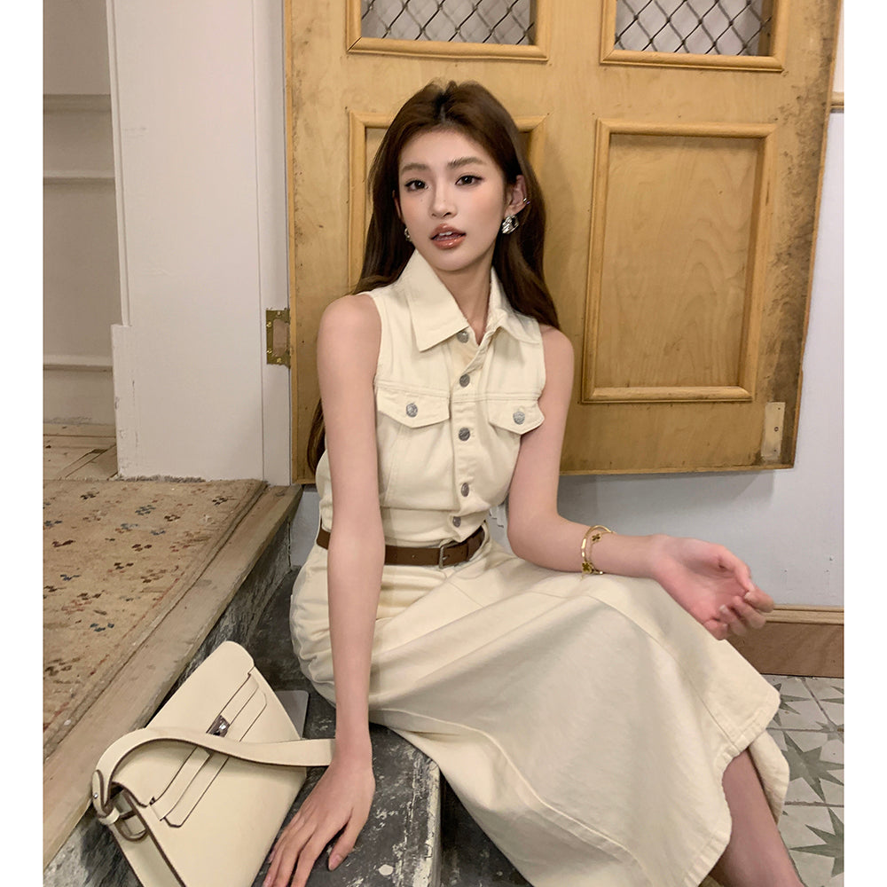 2025年春夏新作ニッチデザインウエストデニムスカートレディースフレンチスタイリッシュ気質ロングドレスのリアルショット
