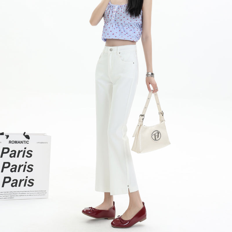 エラスティックホワイトスリープルーフテンセルデニムミニパンツレディースサマーシンハイウエストスプリットクロップドアイスシルクホーンパンツ