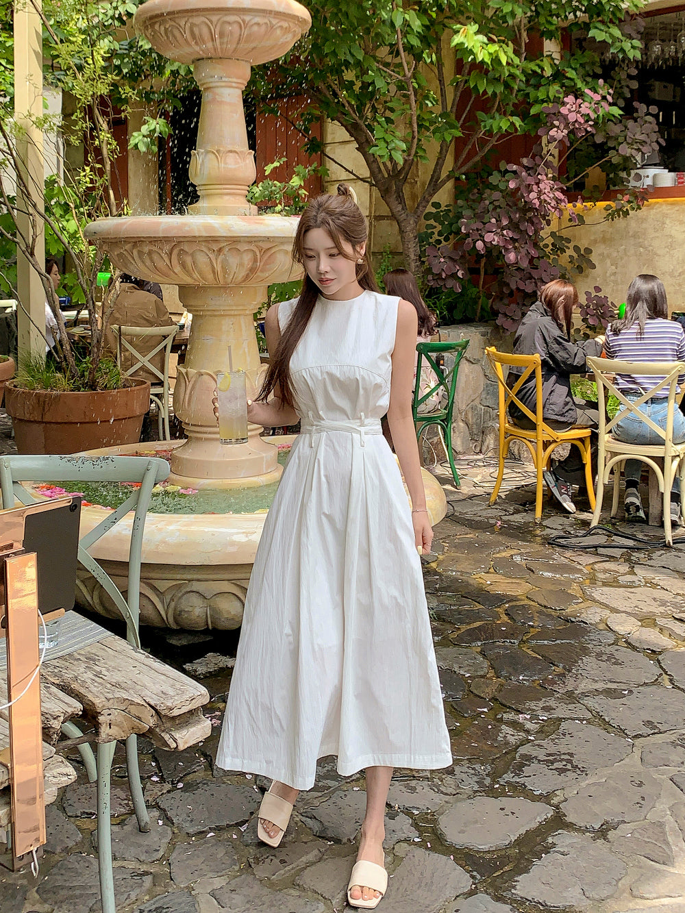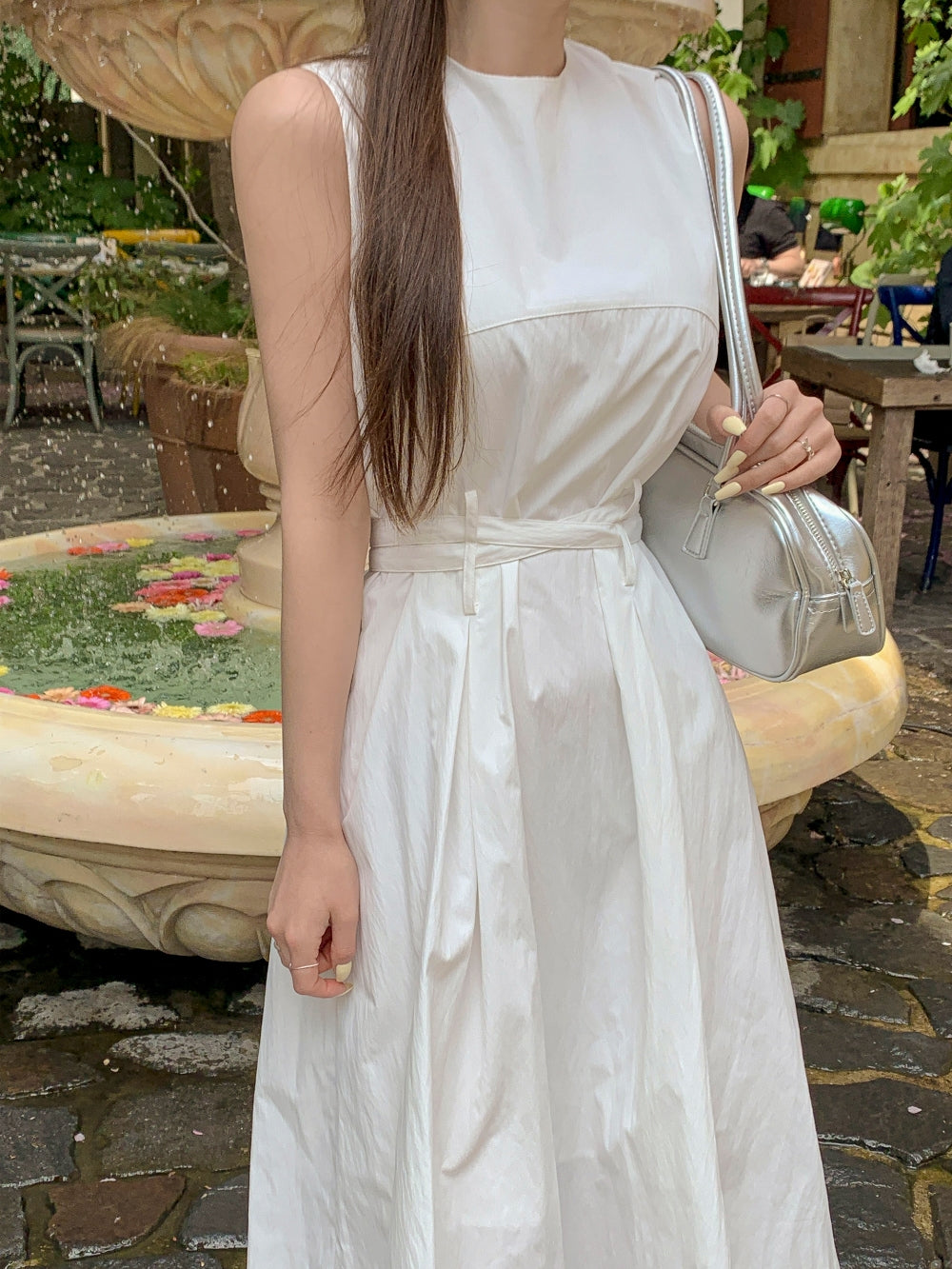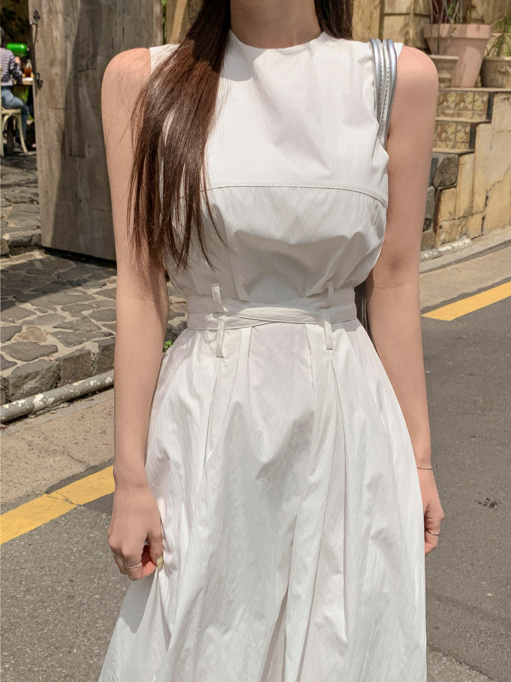 シックな韓国夏モダンニッチウエストベルトスリムフィットシンプルで用途の広いノースリーブベストドレス