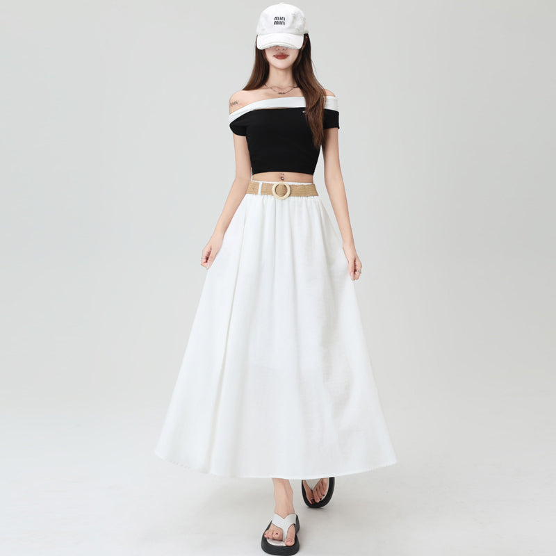リアルショットコットンとリネンのバケーションAラインアンブレラスカートレディース2025年夏新作ミドル丈スカート(小柄男性用)