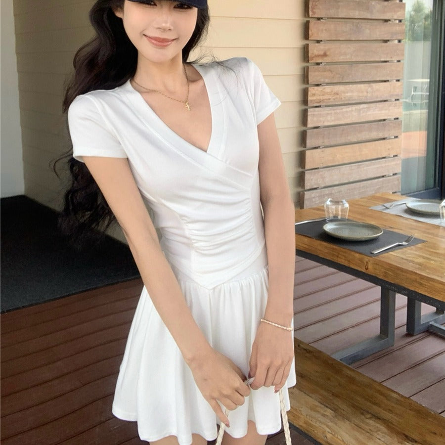リアルショットセクシー Vネックスリムフィットストラップ付きTシャツトップ+スカートショートスカートパンツ女性用ファッションスーツ