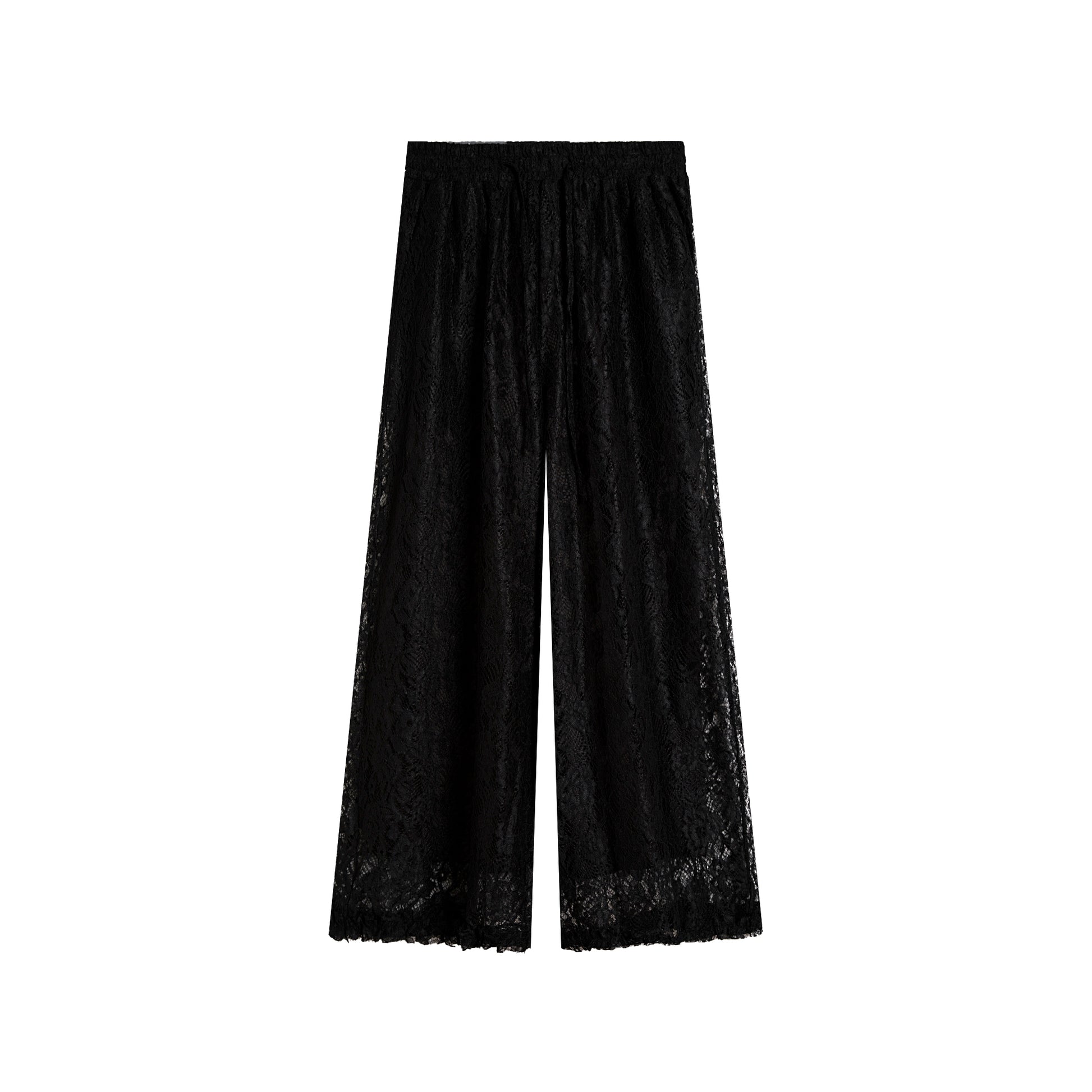 リアルショット万能レース、ホローレース、ゴム、ハイウエスト、スリム、ストレート、ワイドレッグ、カジュアル、女性用ロングスタイル