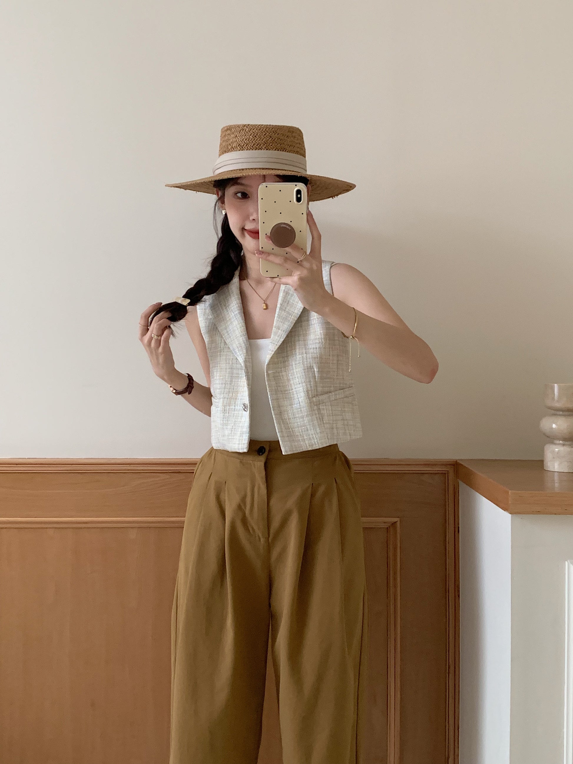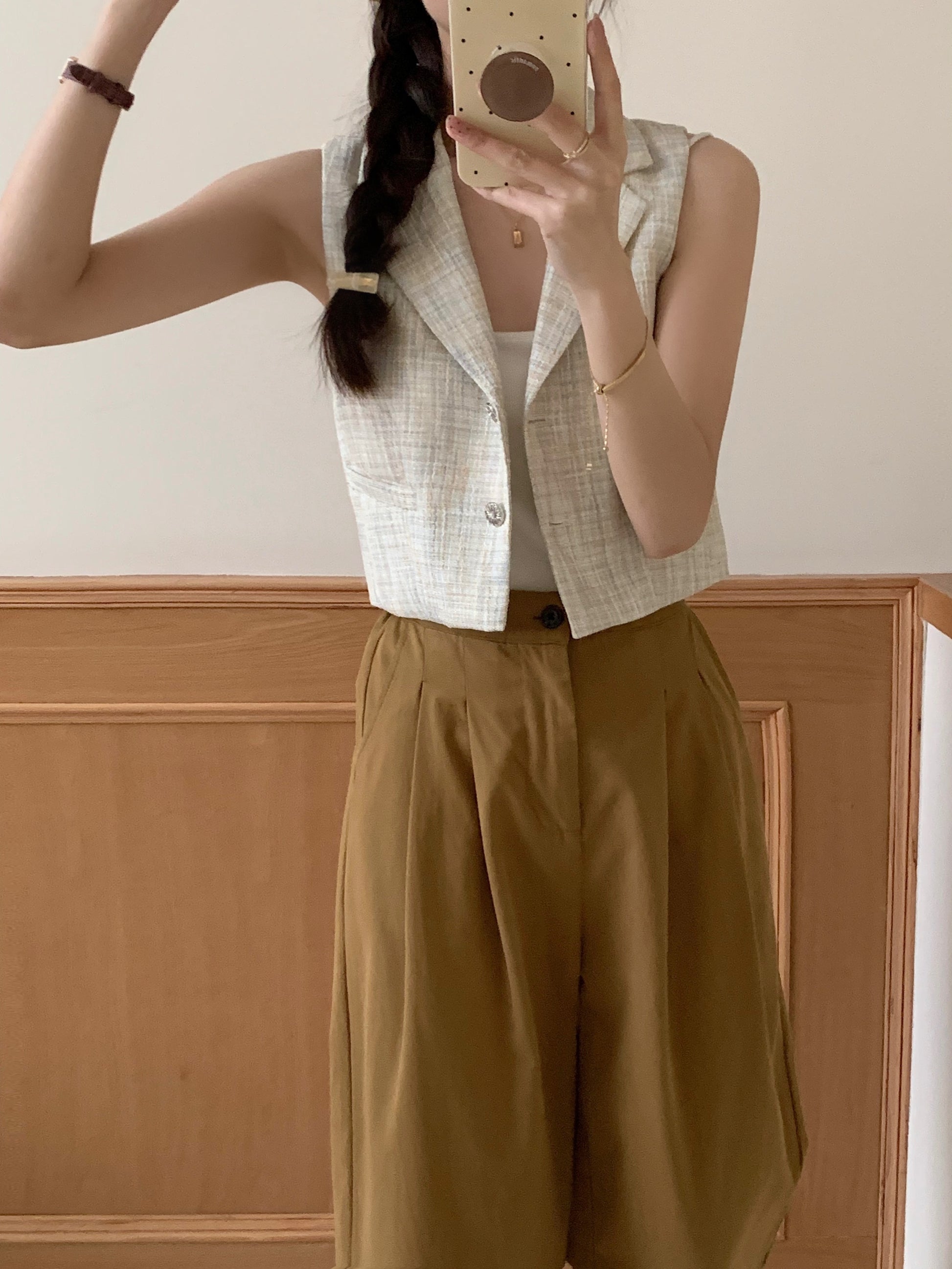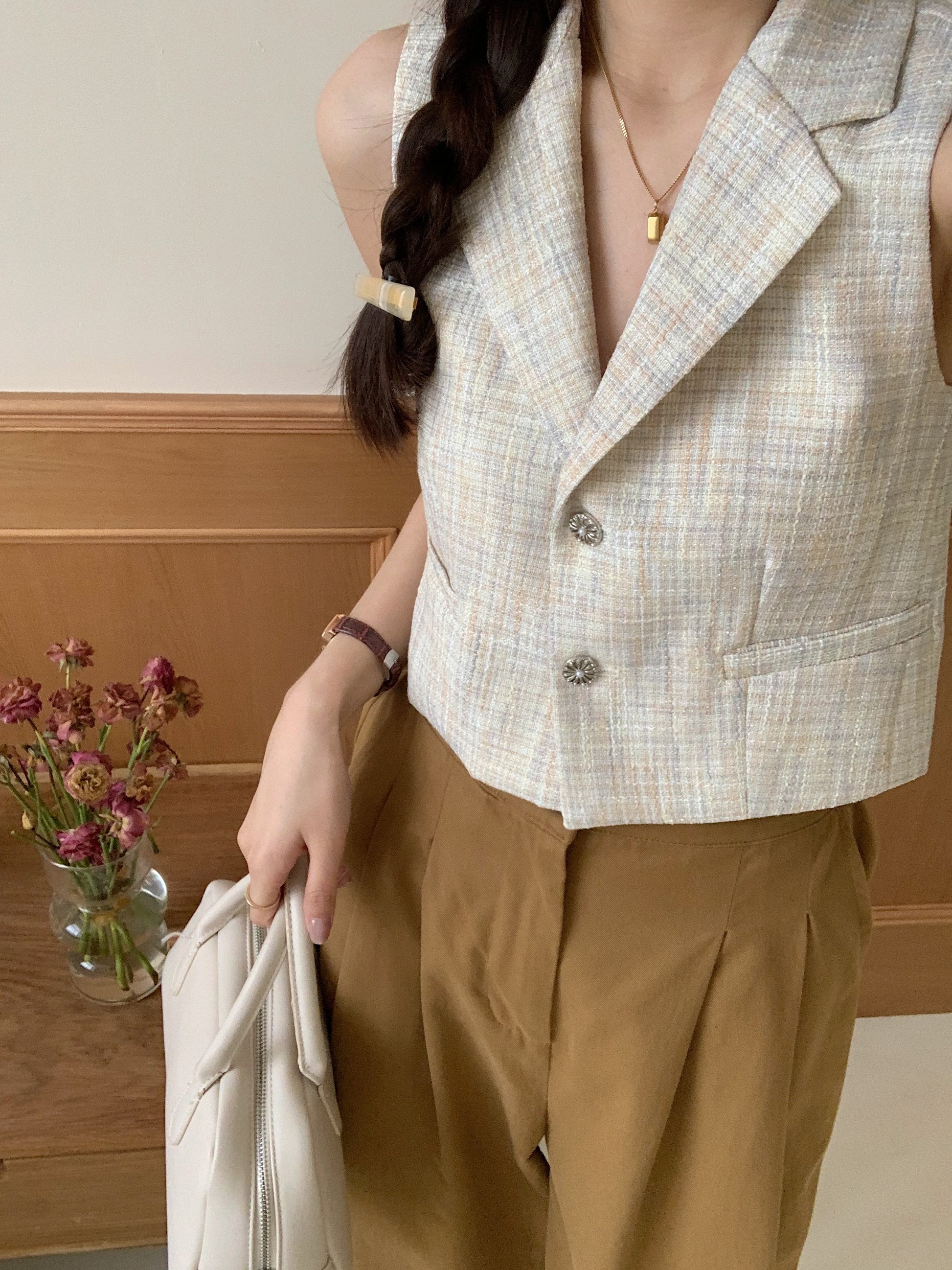 リアルショット入荷しました〜エレガントなベスト、女性が外で着用できるデザインのショートノースリーブトップ