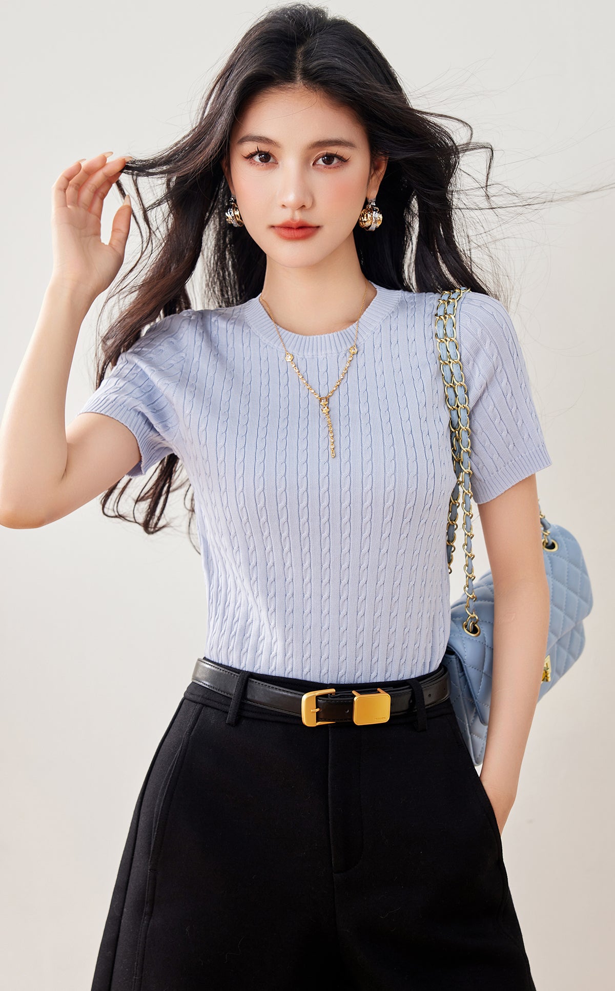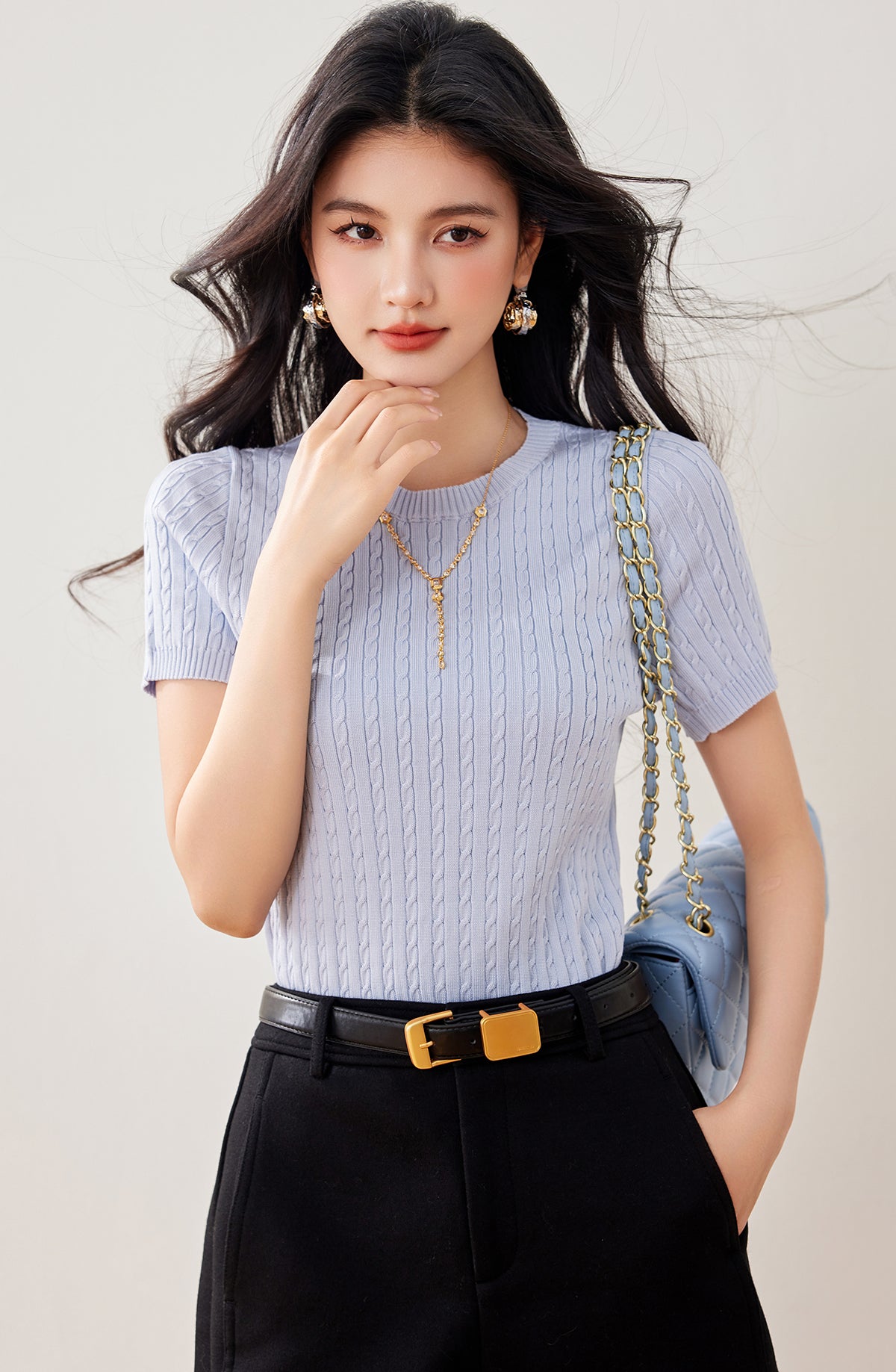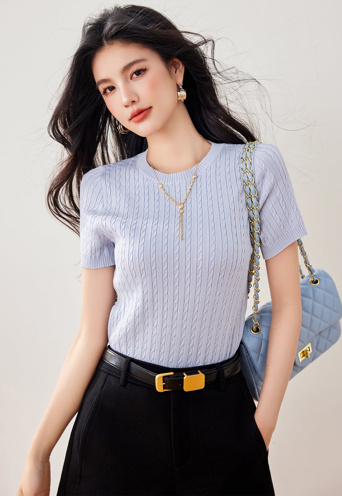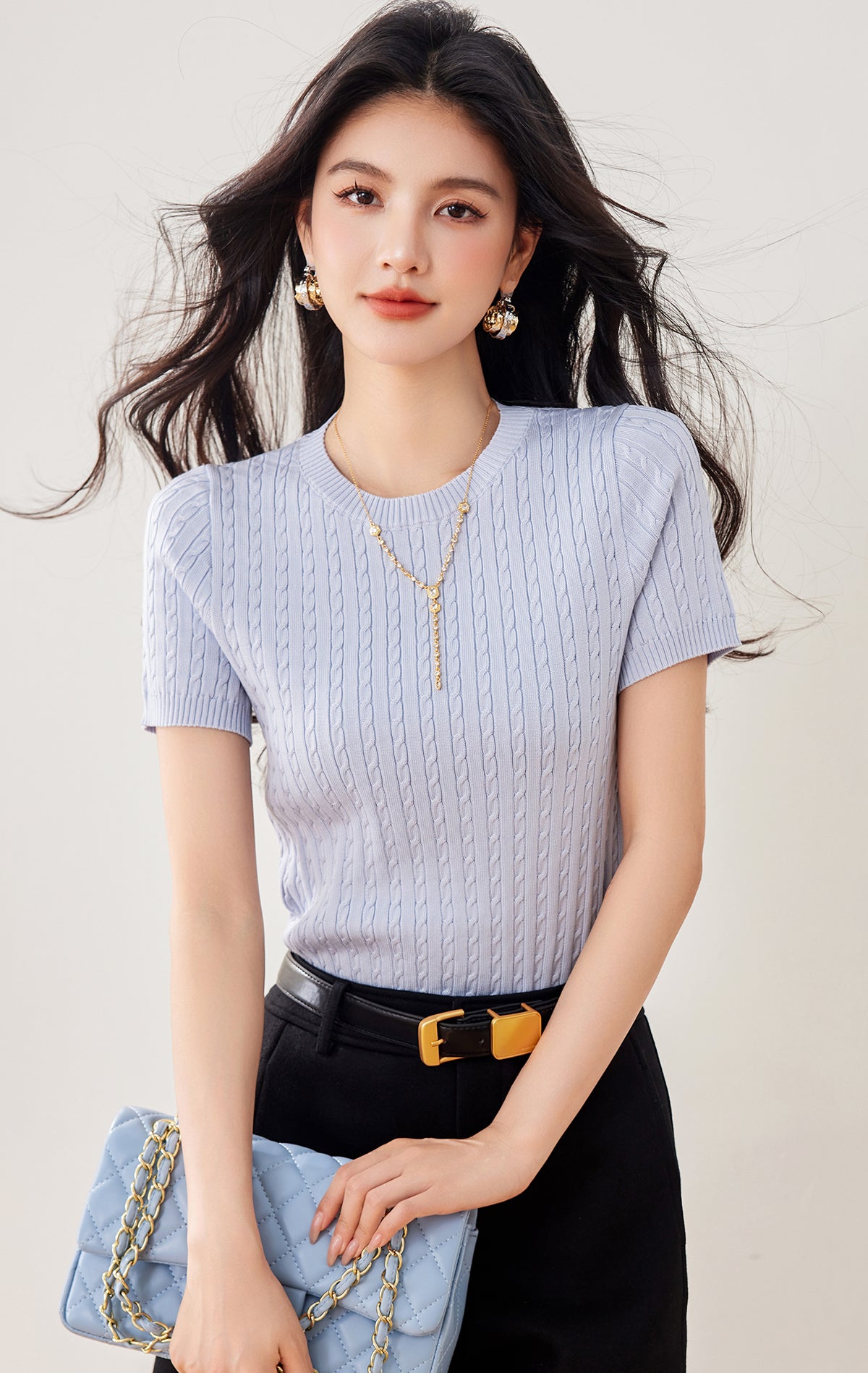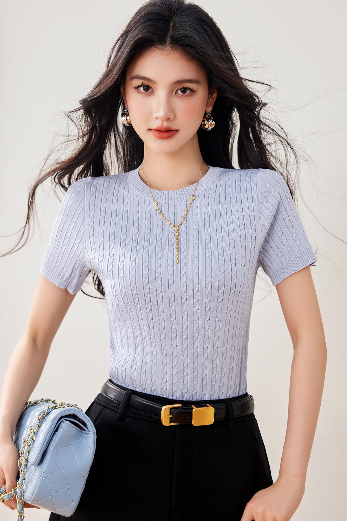 リアルショット #有现货ニット半袖女性用 2025年夏新作シルクトップ