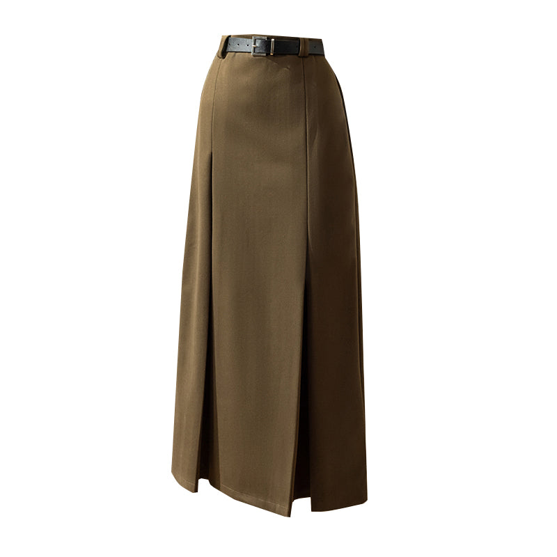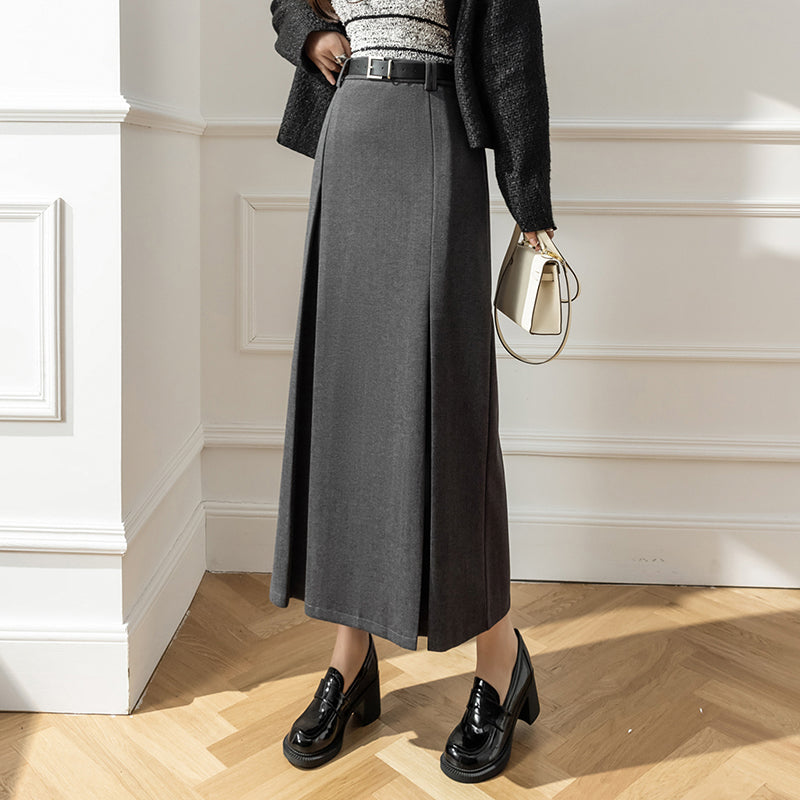 レディウールスカートレディース2024冬新作韓国ハイウエストレトロストレートスーツウールAラインミディスカート
