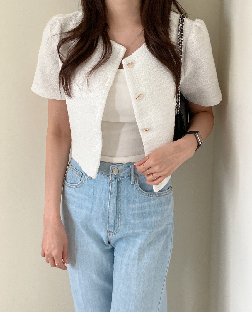 レディシックなラウンドネックスモールフレグランスショートジャケット