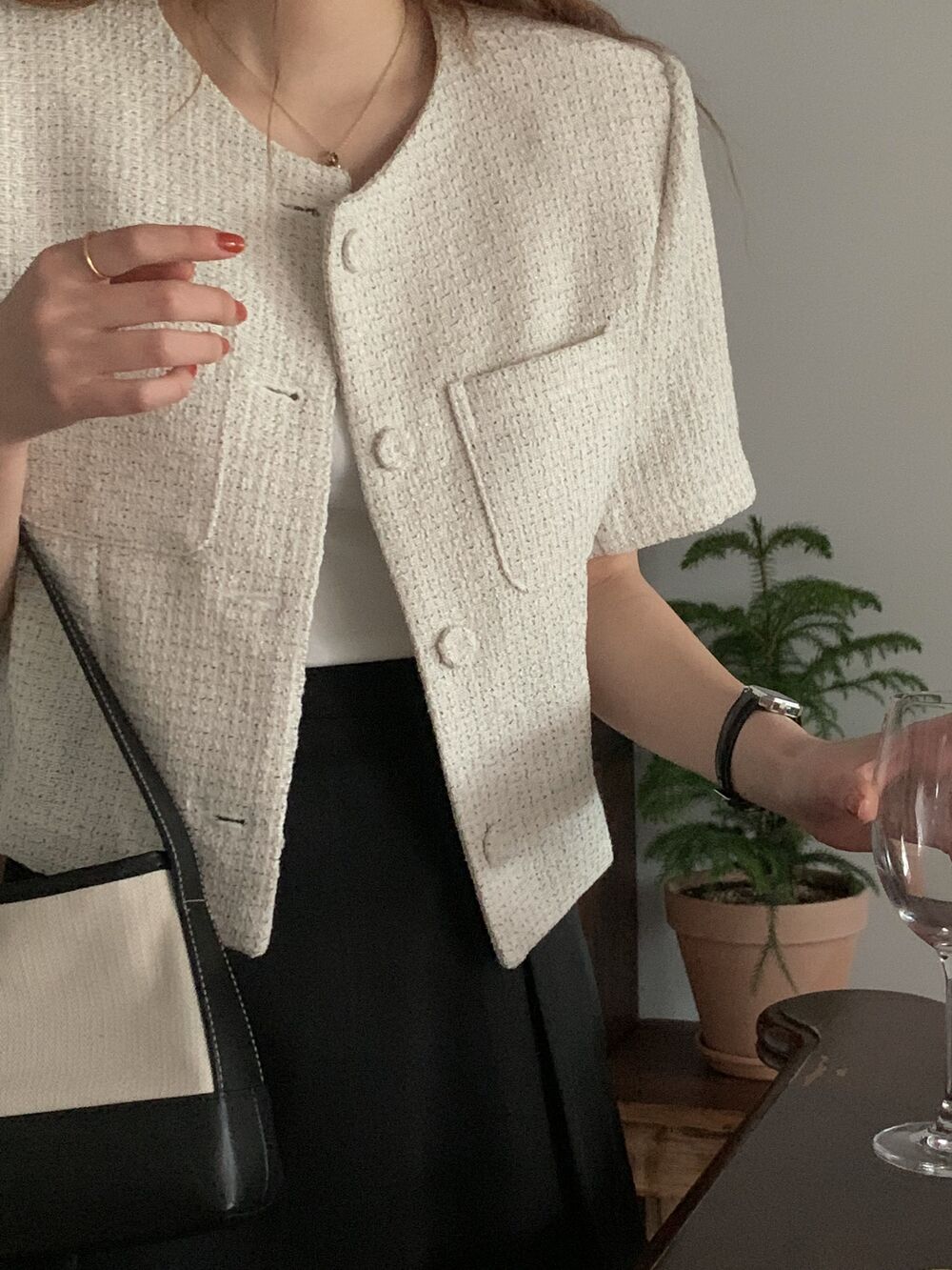 レディストックシックフレンチスタイル半袖スモールジャケット女性用スリムフィット多目的カーディガン