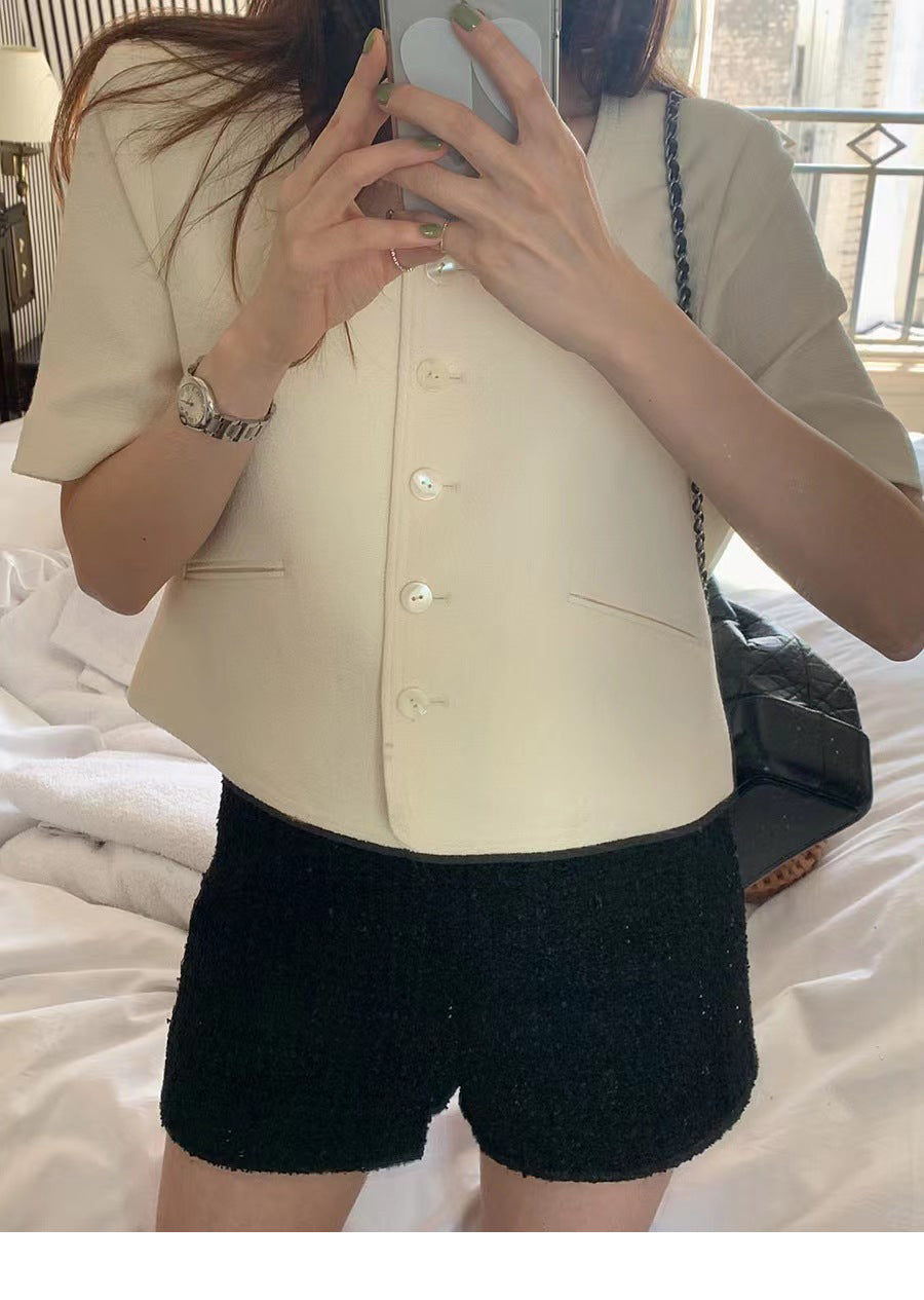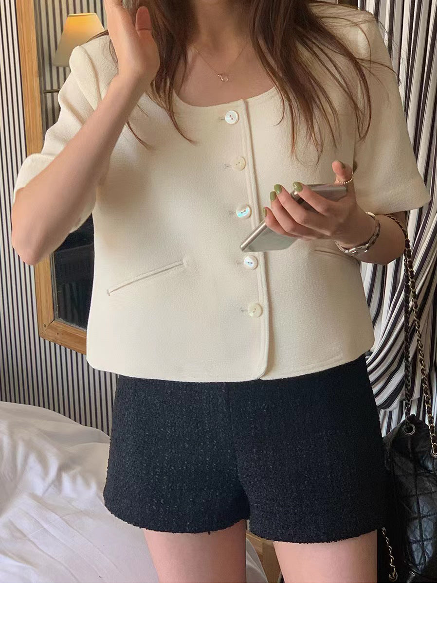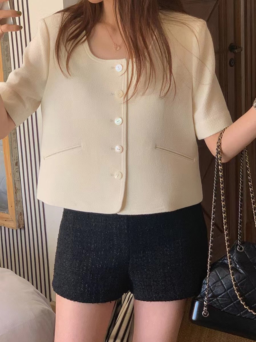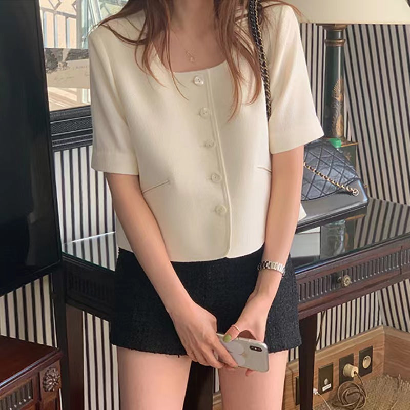 レディストック韓国シックセレブ Xiaoxiangfeng スクエアネックショートジャケット女性用春夏半袖シャツトップ