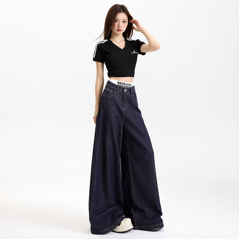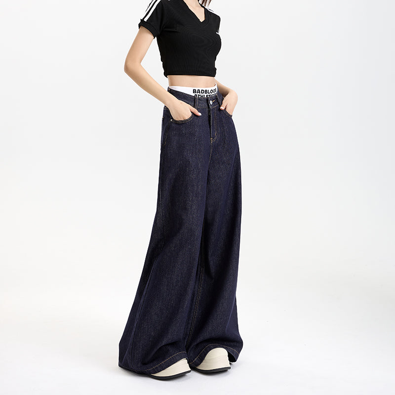 ワイドレッグパンツ、ルーズパンツ、色あせしにくい、デニム、ナチュラルカラー、デニム、ファットMM、着心地の良いジーンズ、秋新品、多用途でスリム