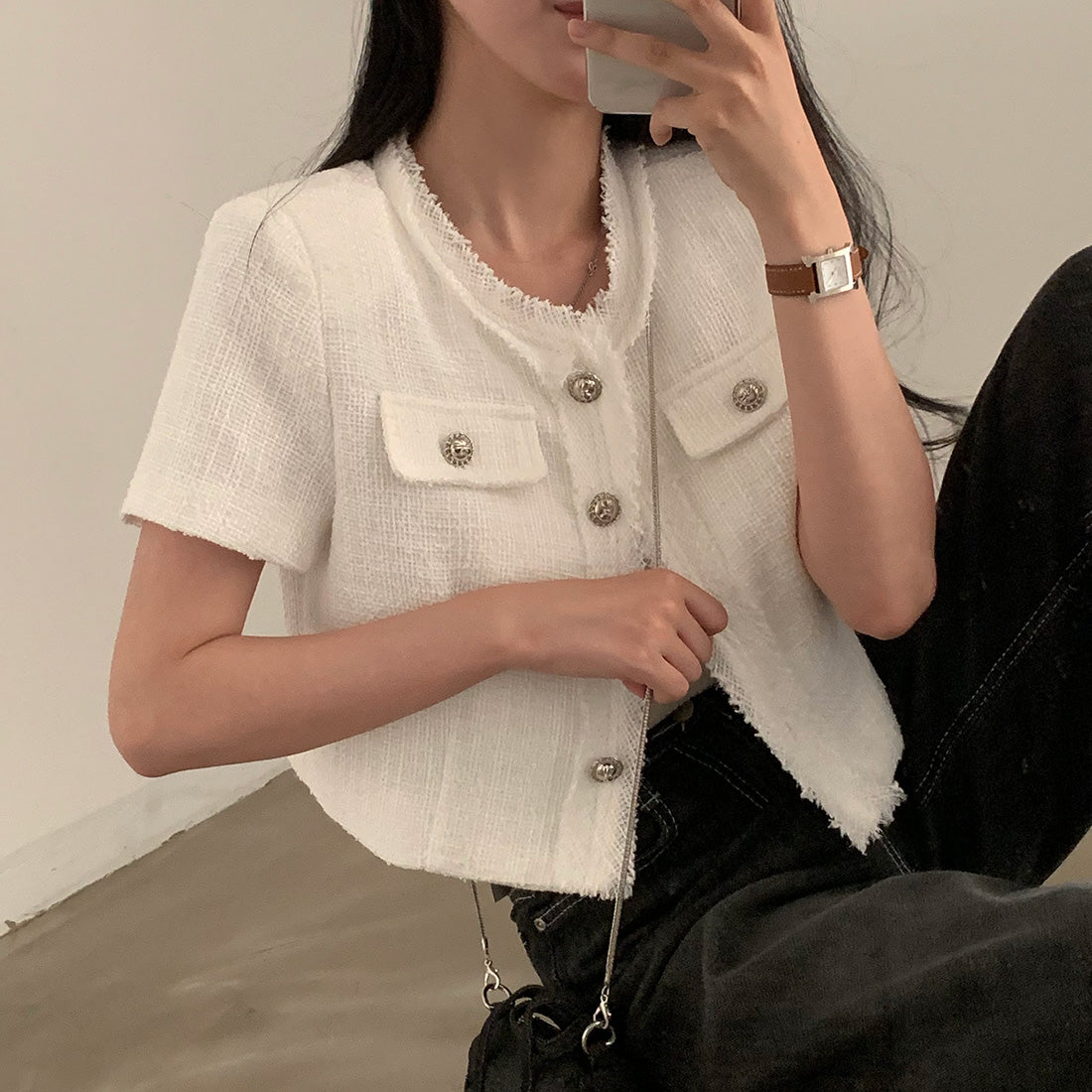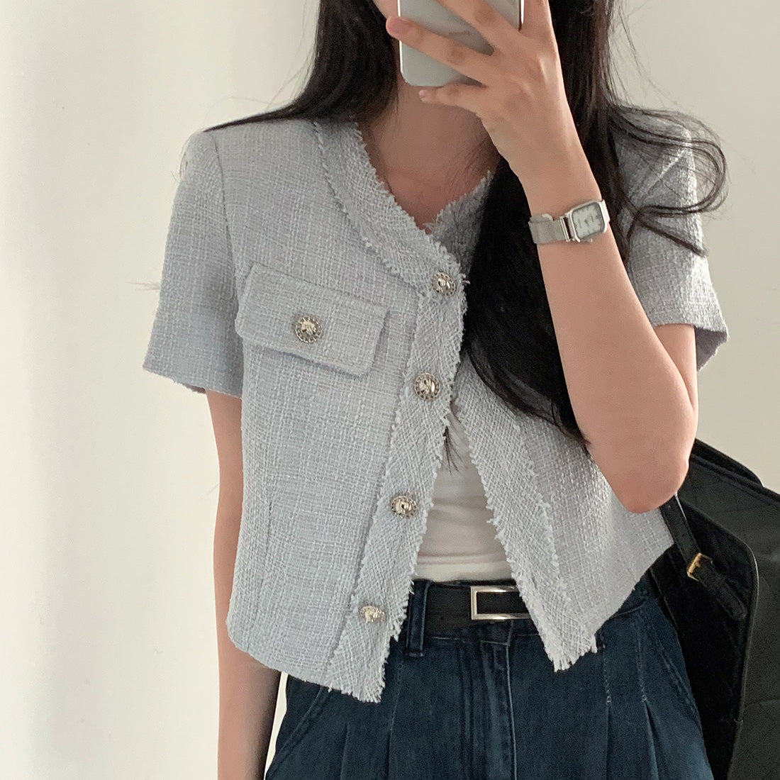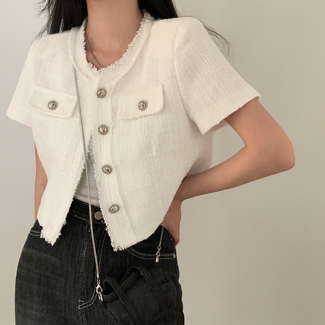 韓国シックなクレープショートジャケット