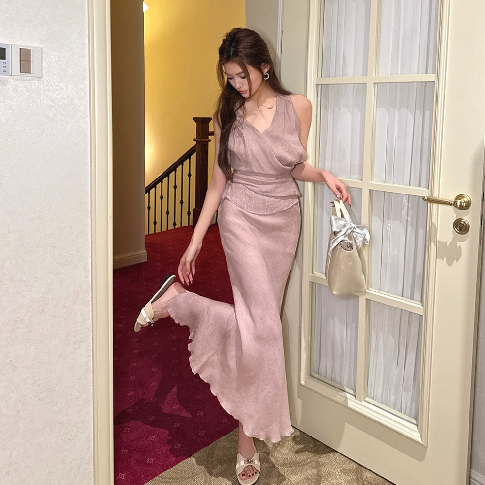 2025年春夏のリアルショット、ニュースタイル、ライトスモークデザイン、バックスリットバッグ、ヒップスカート、マーメイドスカート、レディーススーツ
