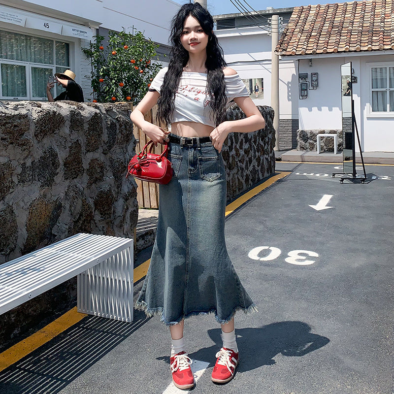 3Dカットのマーメイドデニムスカート、女性用スリムヒップカバースカート、夏と秋のハイウエストオールマッチマーメイドスカート