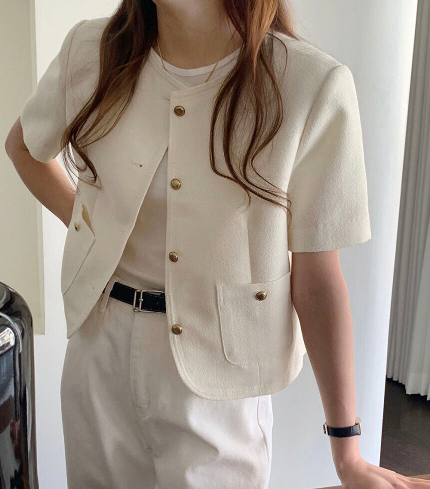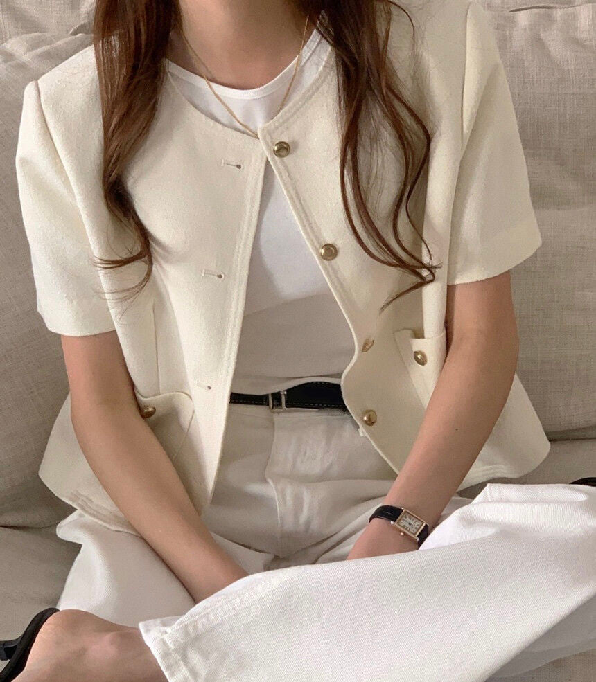 INS ブロガースタイルフレンチスタイルスモールフレグランスシングルブレストショートトップショートジャケット、2色