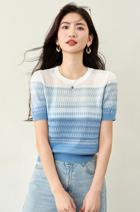 グラデーション半袖セーター