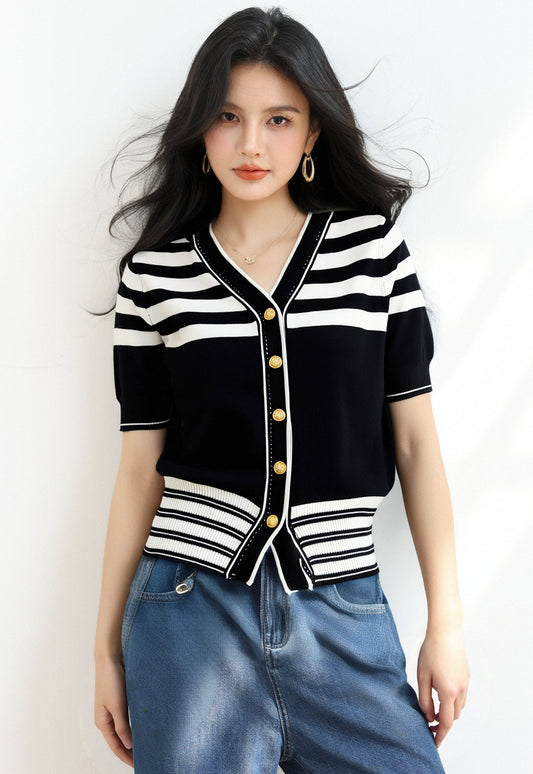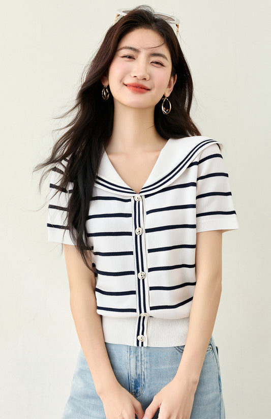 • 半袖ストライプニット