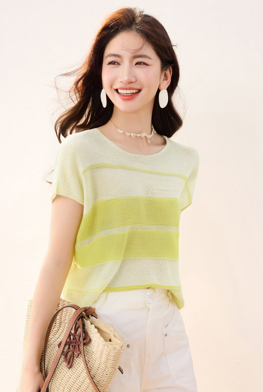 半袖ストライプニット