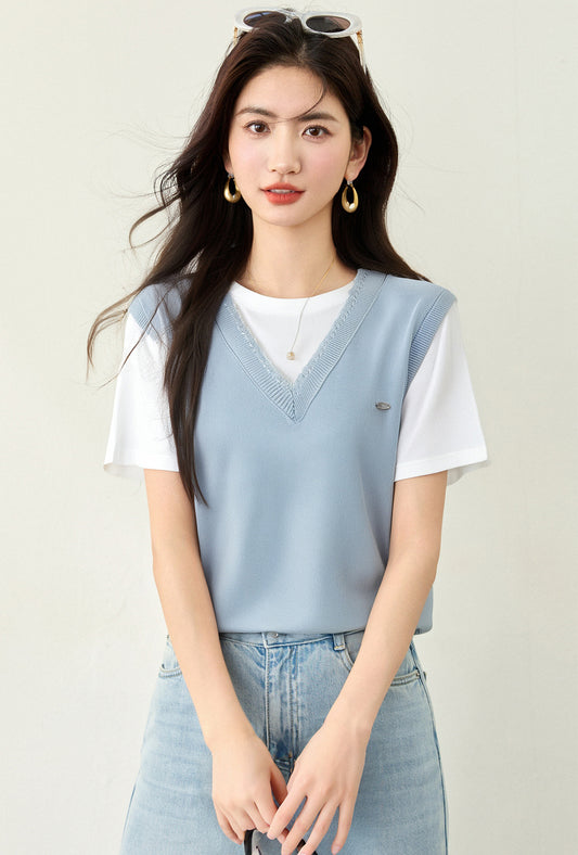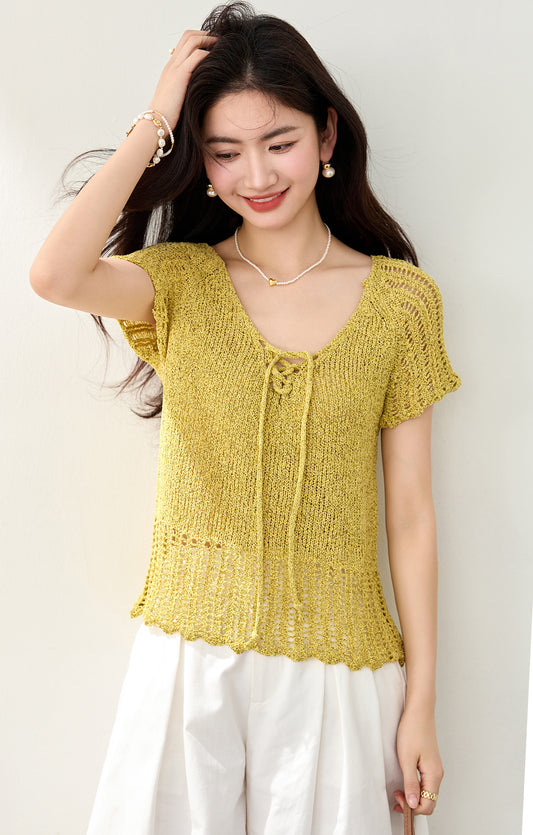 • ホローニット半袖Tシャツ