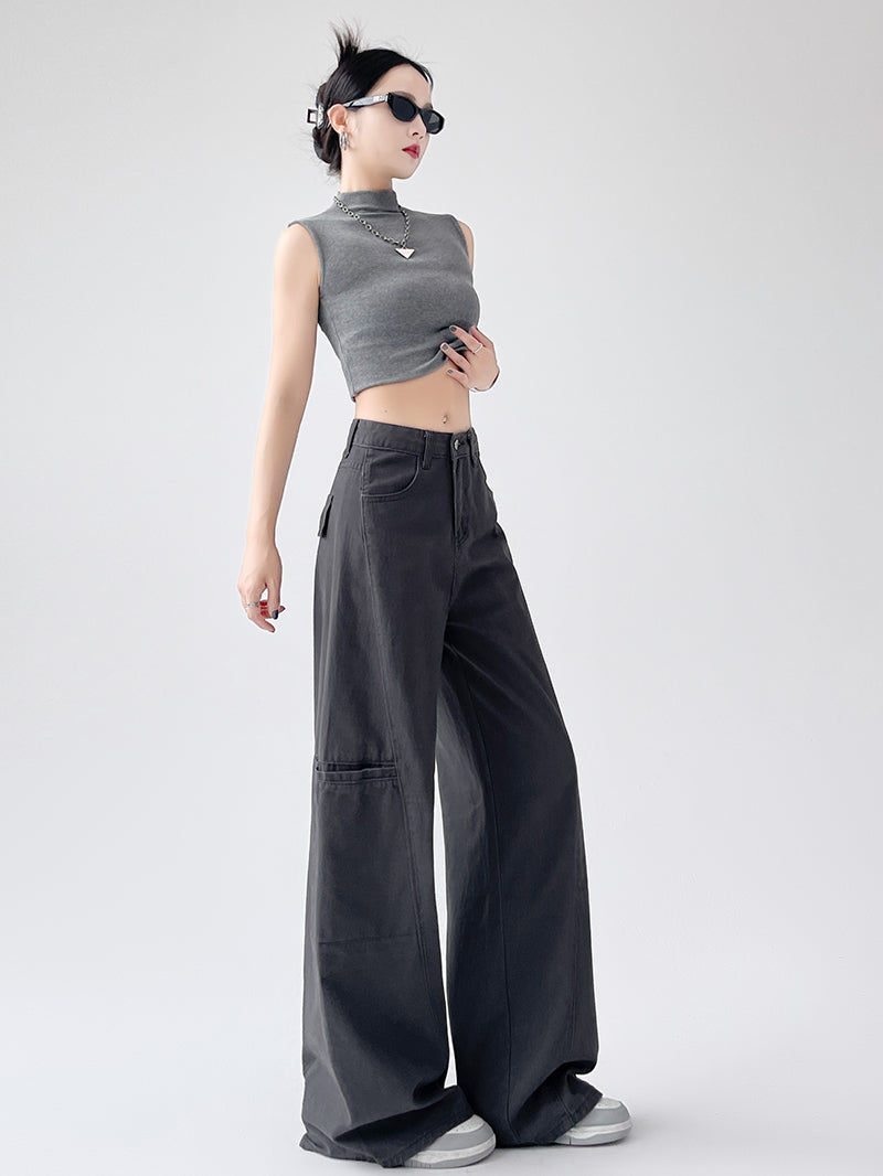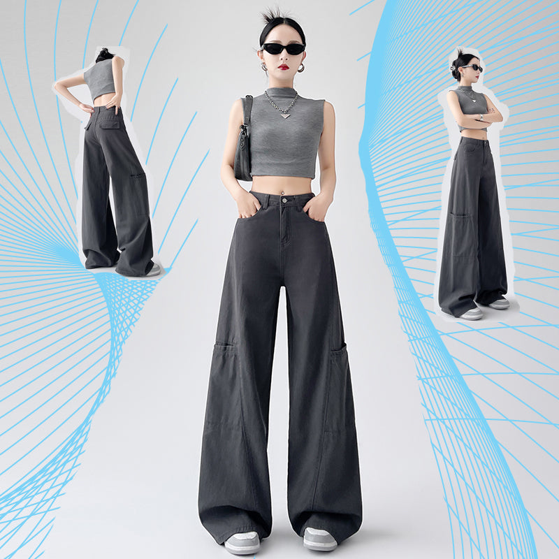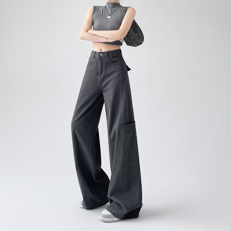 アメリカンワークパンツレディース2025春秋新作ハイウエストルーズストレートドレープカジュアルスポーツワイドレッグスウェットパンツ