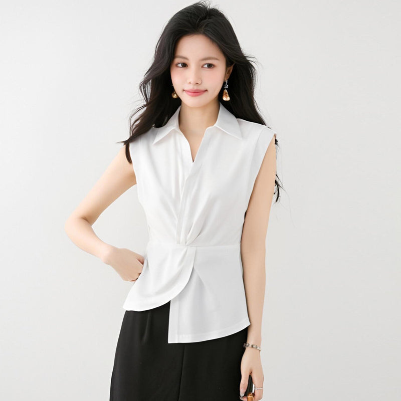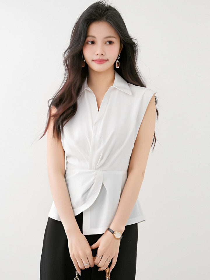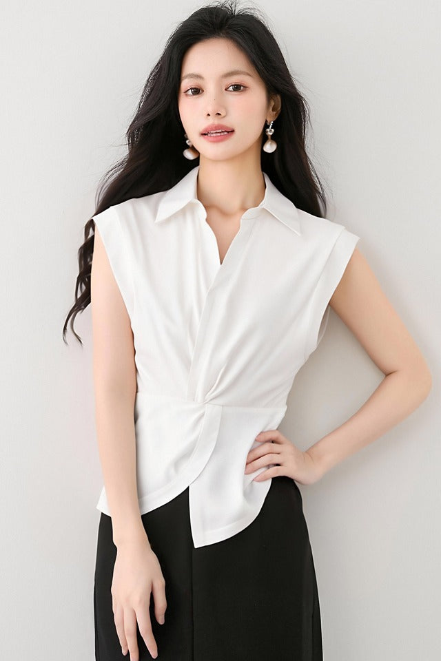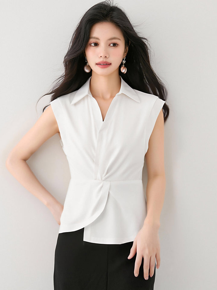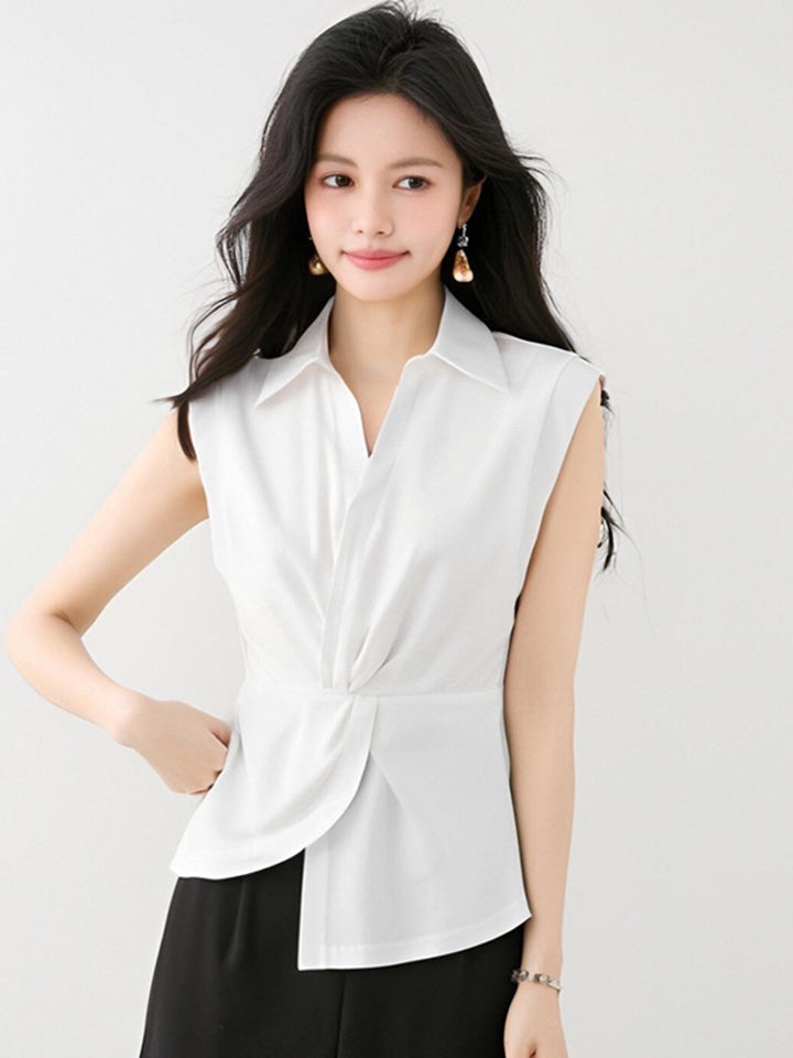 モダンツイストウエストラペルノースリーブTシャツ2025夏新作スリムシックエレガント半袖シャツを出荷