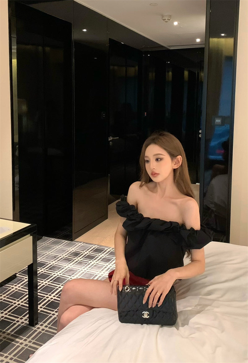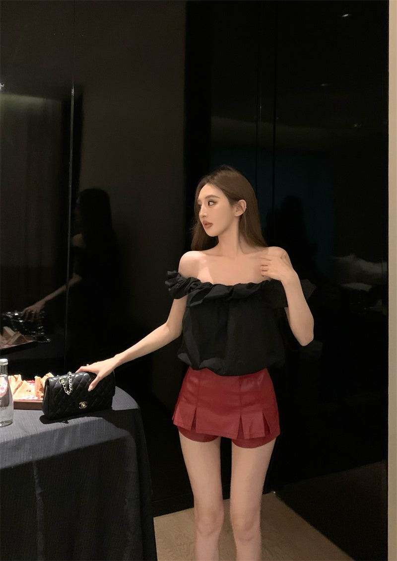 リアルショットお手頃レトロ気質スリムガールワンショルダーショートトップ