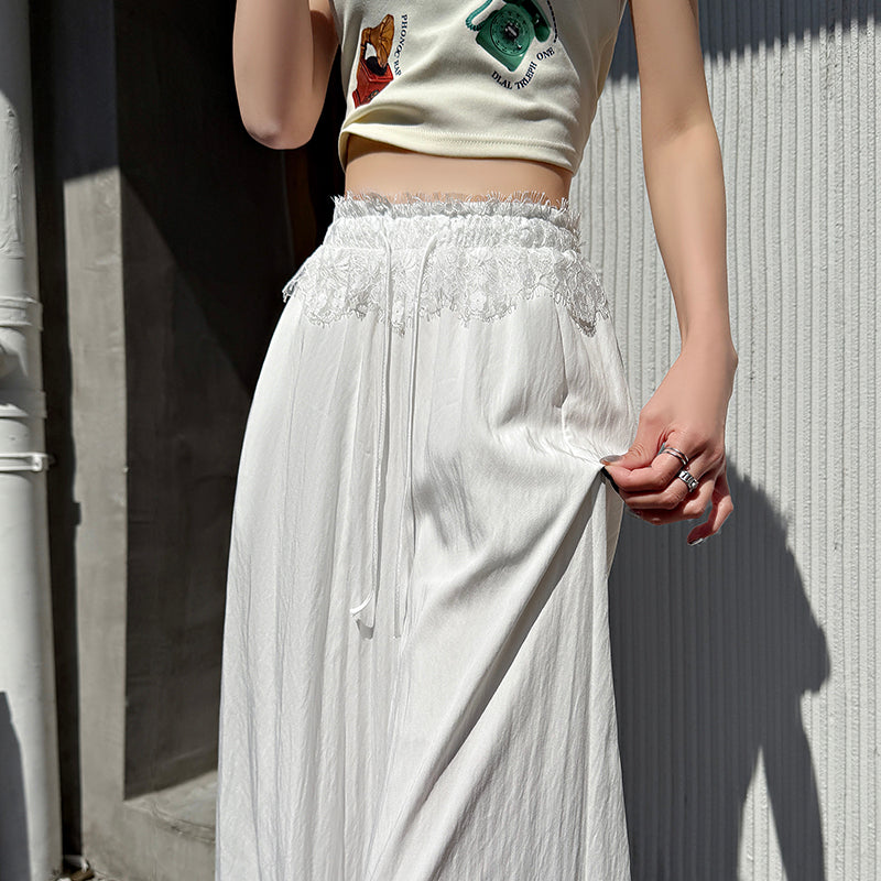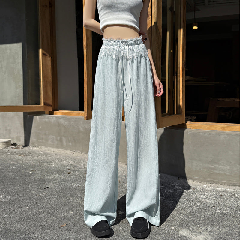 リアルショットアイスシルクドレープパンツレディース2025サマーシンルーズレイドバッククールワイドレッグパンツレース日焼け止めクールサンダル