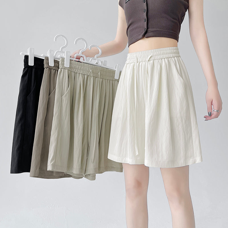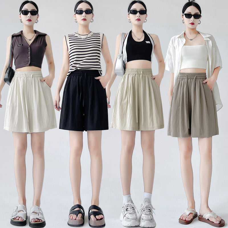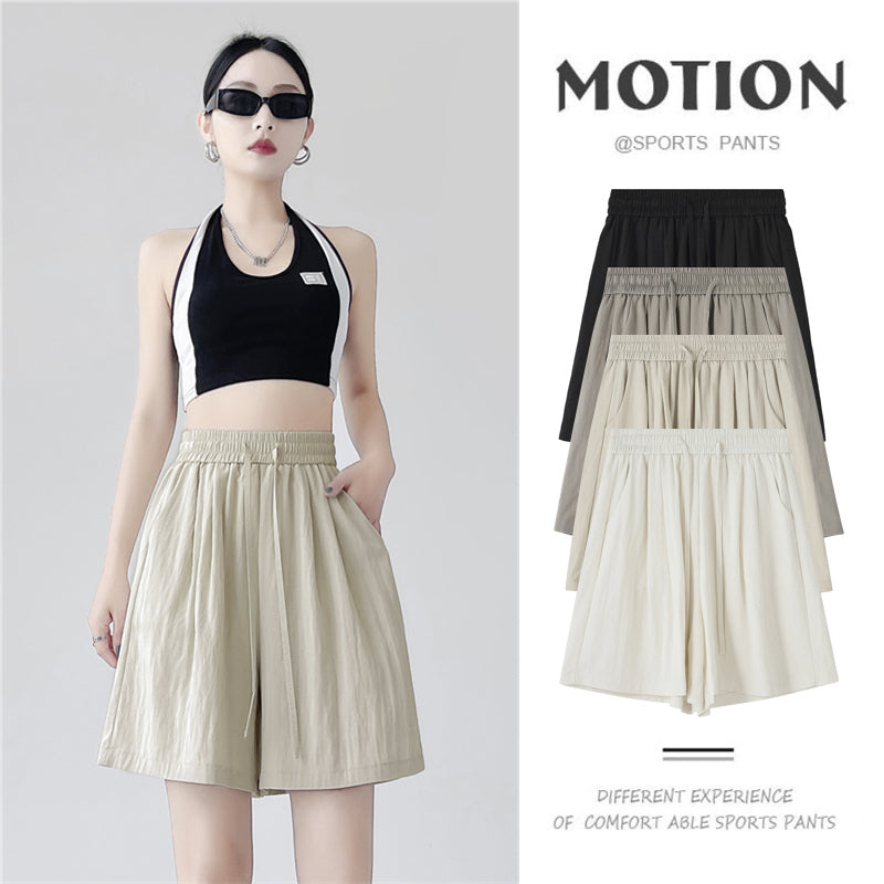 リアルショットアイスシルクファイブポイントパンツ、女性用夏用薄手アウターウェア、小さくて伸縮性のあるウエスト、ルーズ、カジュアル、ワイドレッグスポーツショーツ