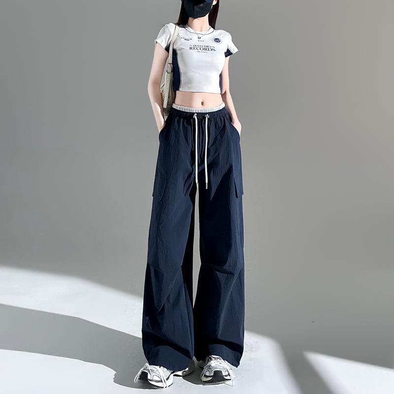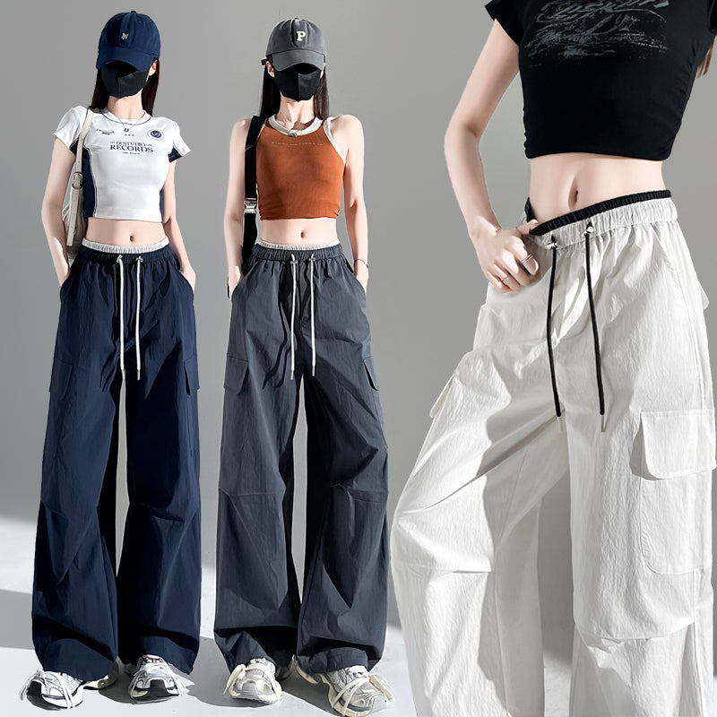 リアルショットアイスシルク速乾アメリカンワークパンツレディース2025夏新作パラシュートパンツルーズアウトドア日焼け止めワイドレッグパンツ