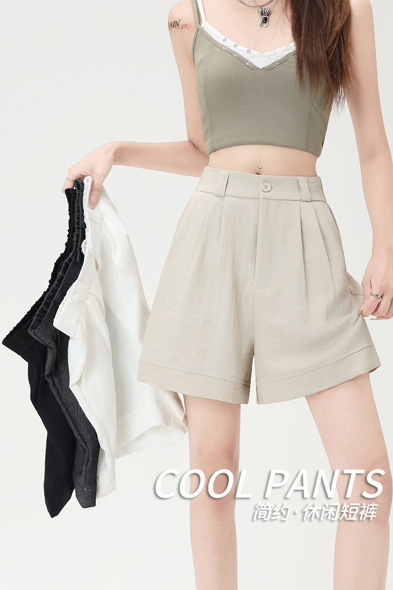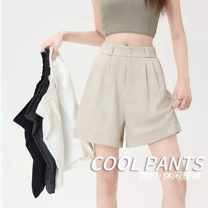 リアルショットテンセルリネンカジュアルルーズで用途の広いウエスタンスタイルのエイジングリデューシングワイドレッグパンツサマーレディーススリム Aラインホワイトショーツ