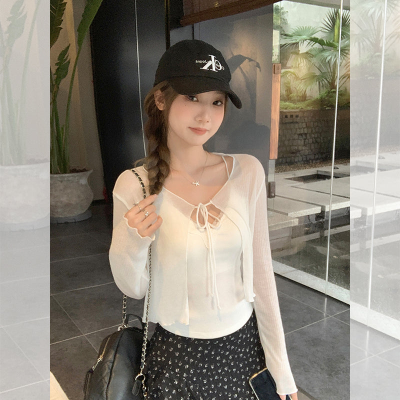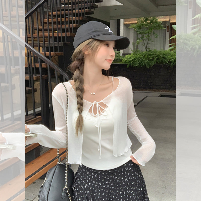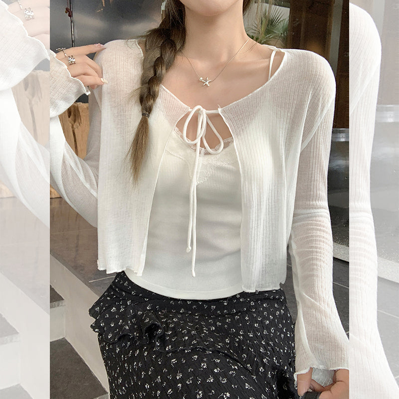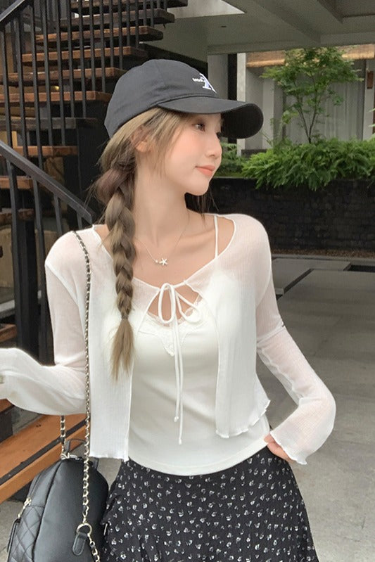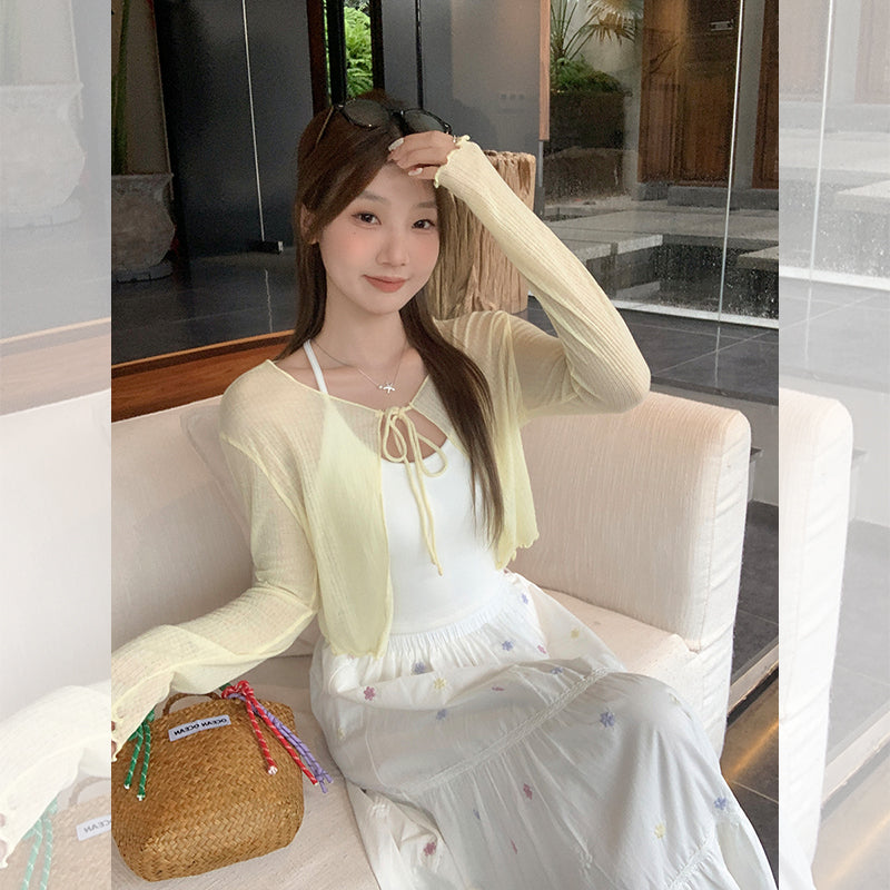 リアルショットリアルプライスアイスシルク日焼け止めアウターカーディガンシンスタイルレディース2025年夏新作木製イヤーエッジレースアップジャケットブラウス