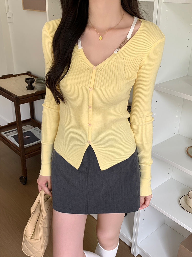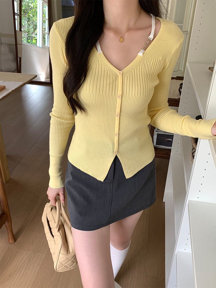 リアルショットリアルプライス韓国ジェントルスタイルスプリットロングスリーブセーターレディース秋デザインニッチ下着プルオーバートップ