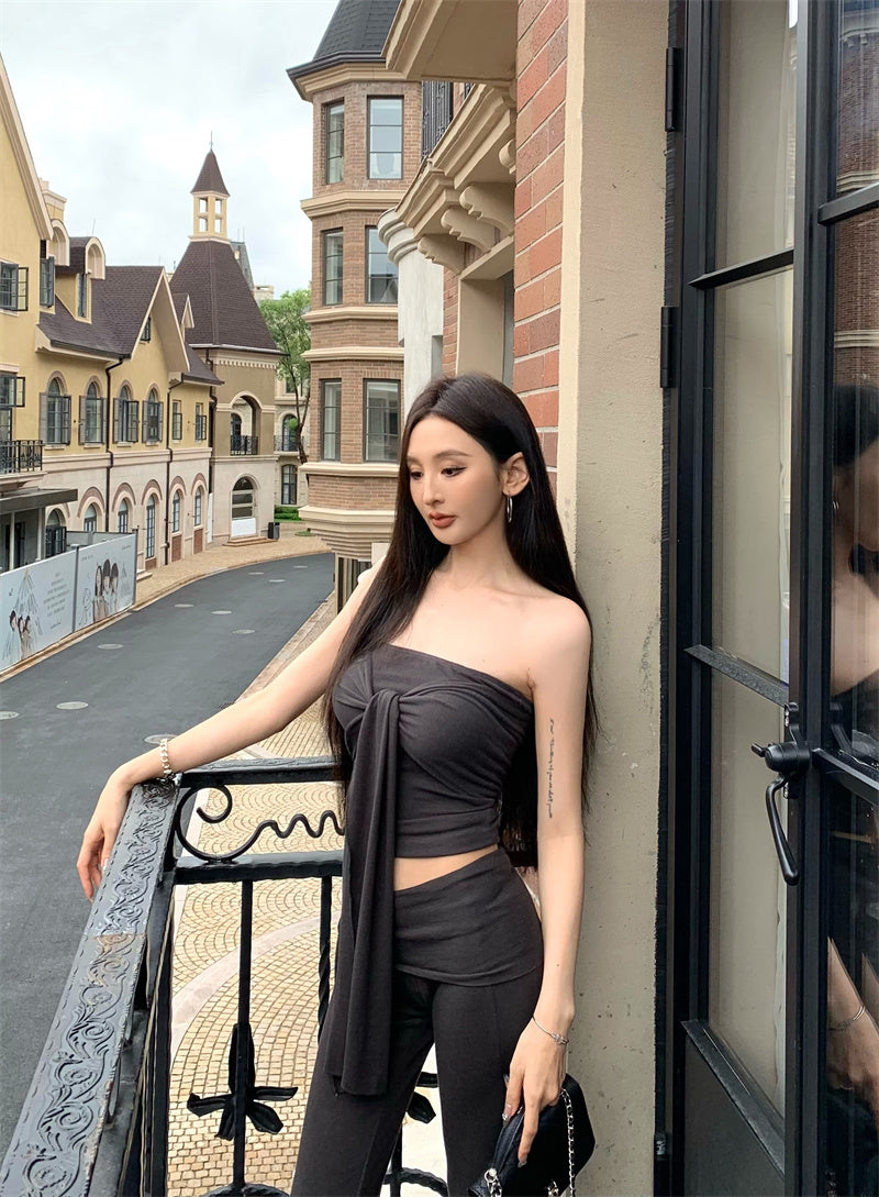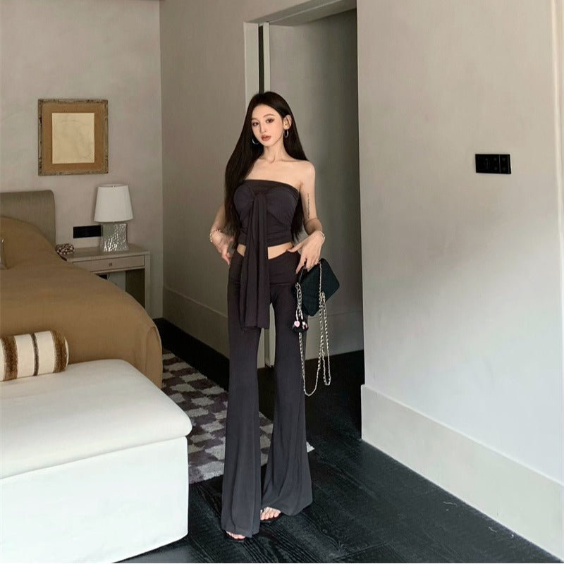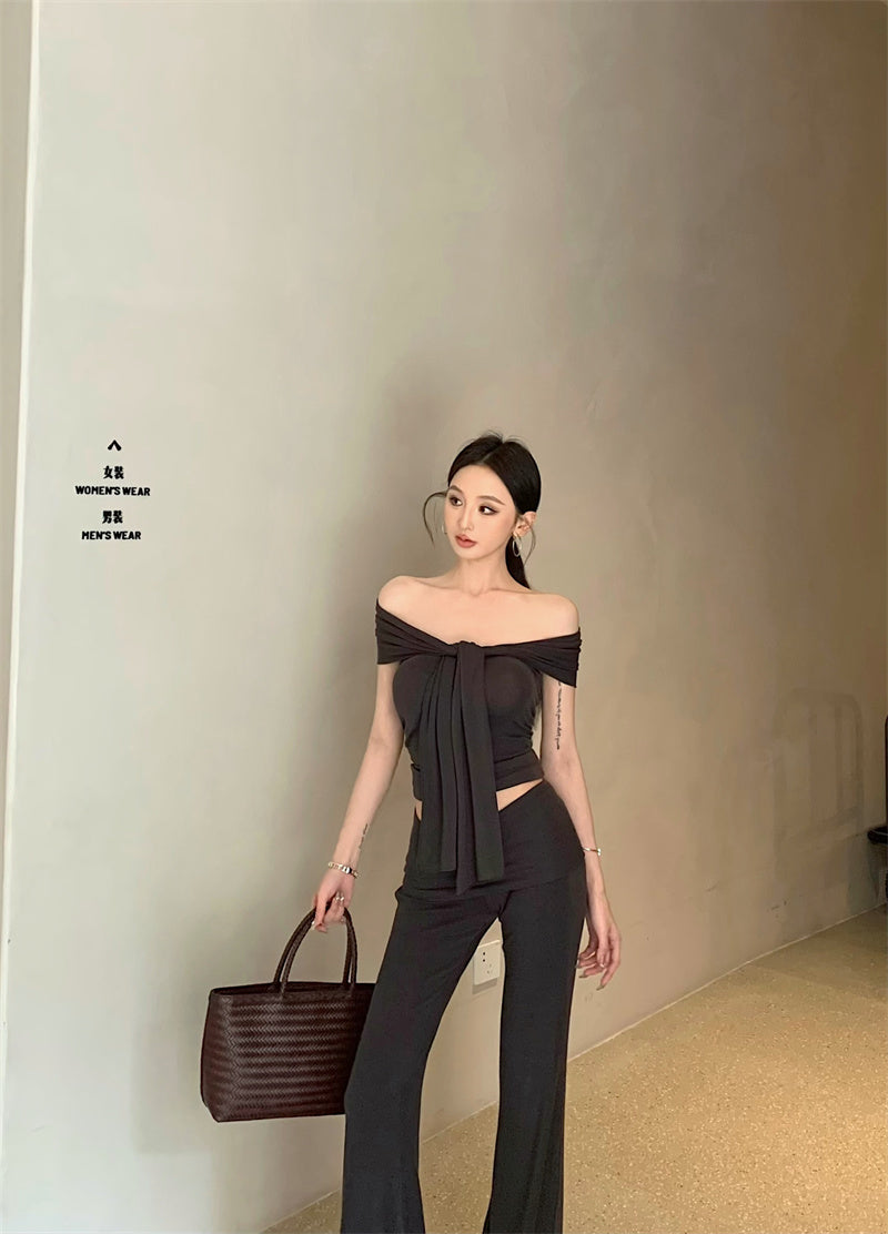 リアルショットリアルプライス韓国バンドートップ+高伸縮性スリミングパンツツーピースセット