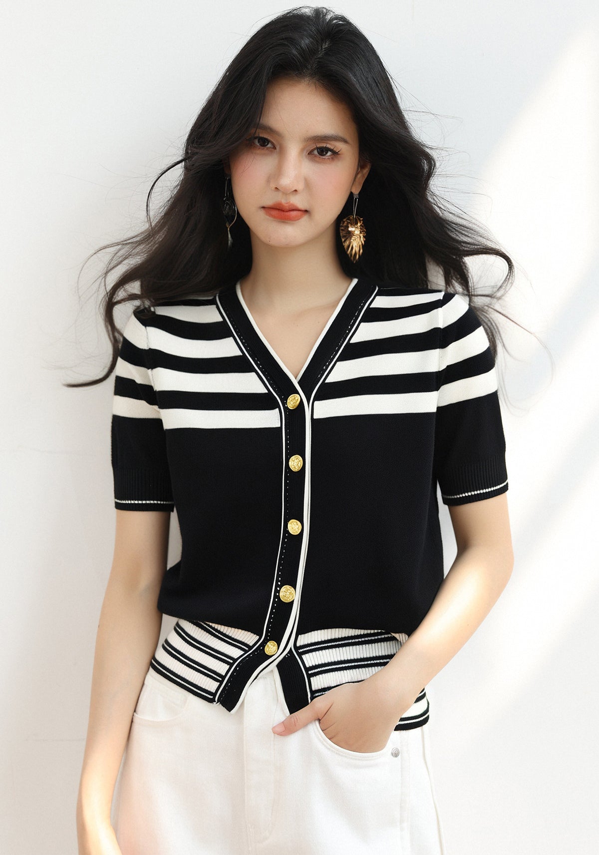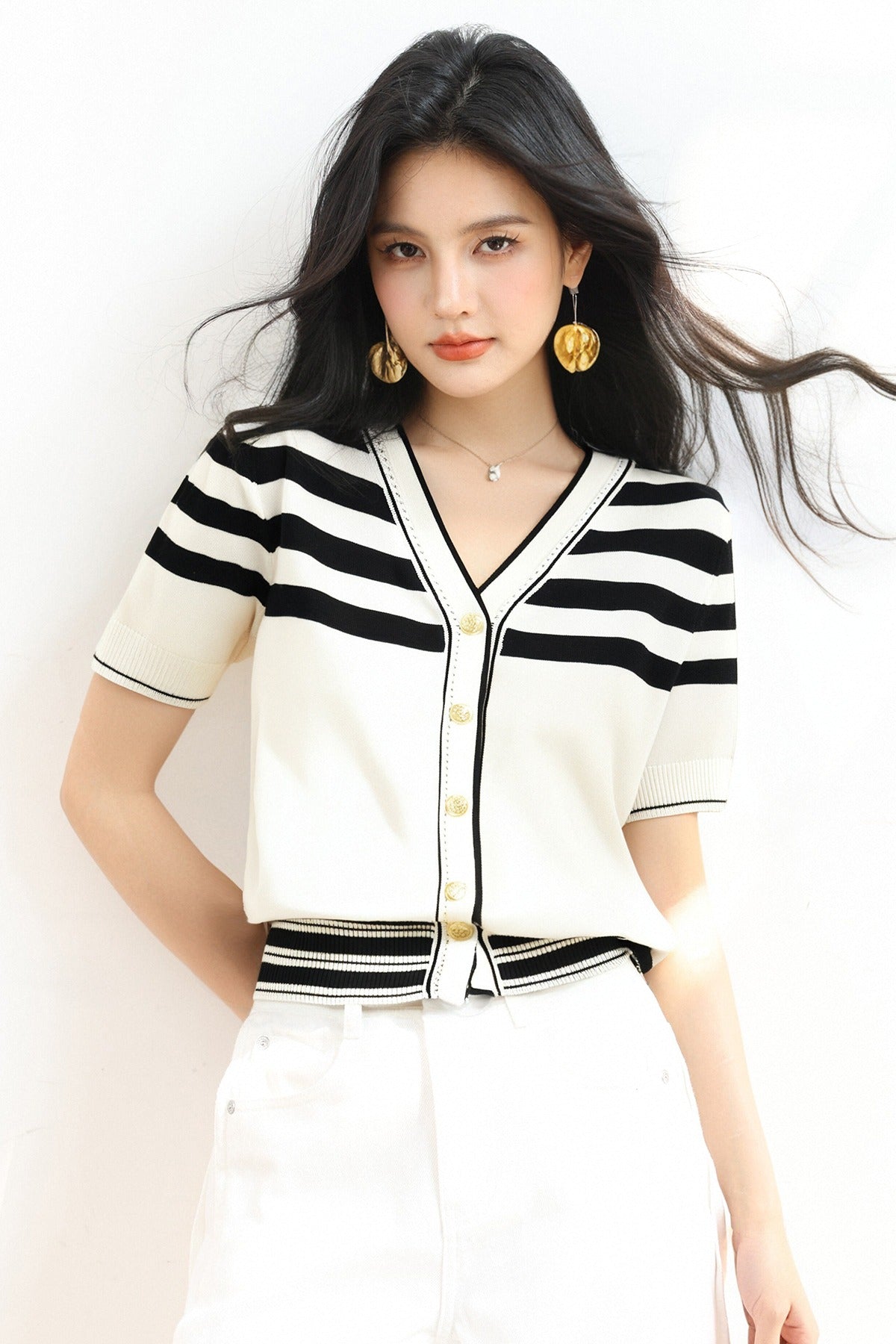 リアルショット◆在庫あり◆アイスシルクセーター、フェミニンスタイル、ハーフハイネック、半袖、サイドスリット、スリムフィットクロップドトップ