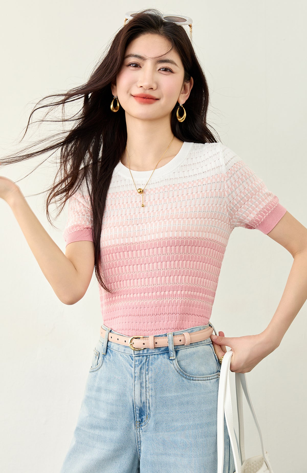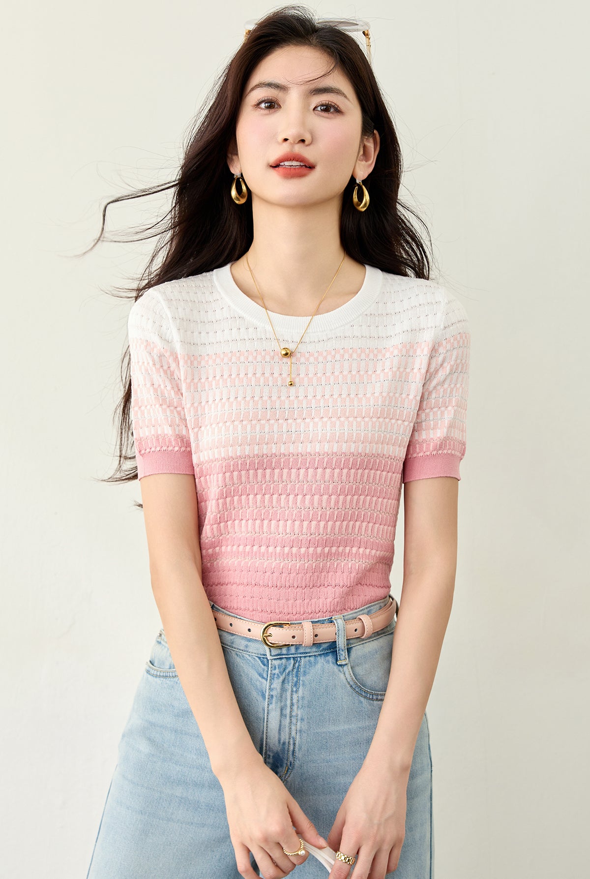 グラデーション半袖セーター
