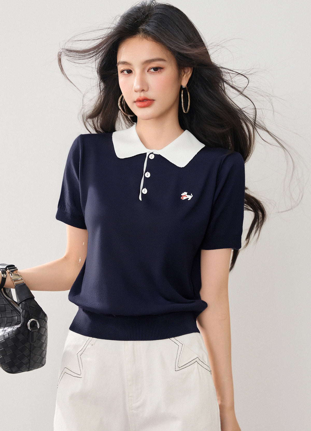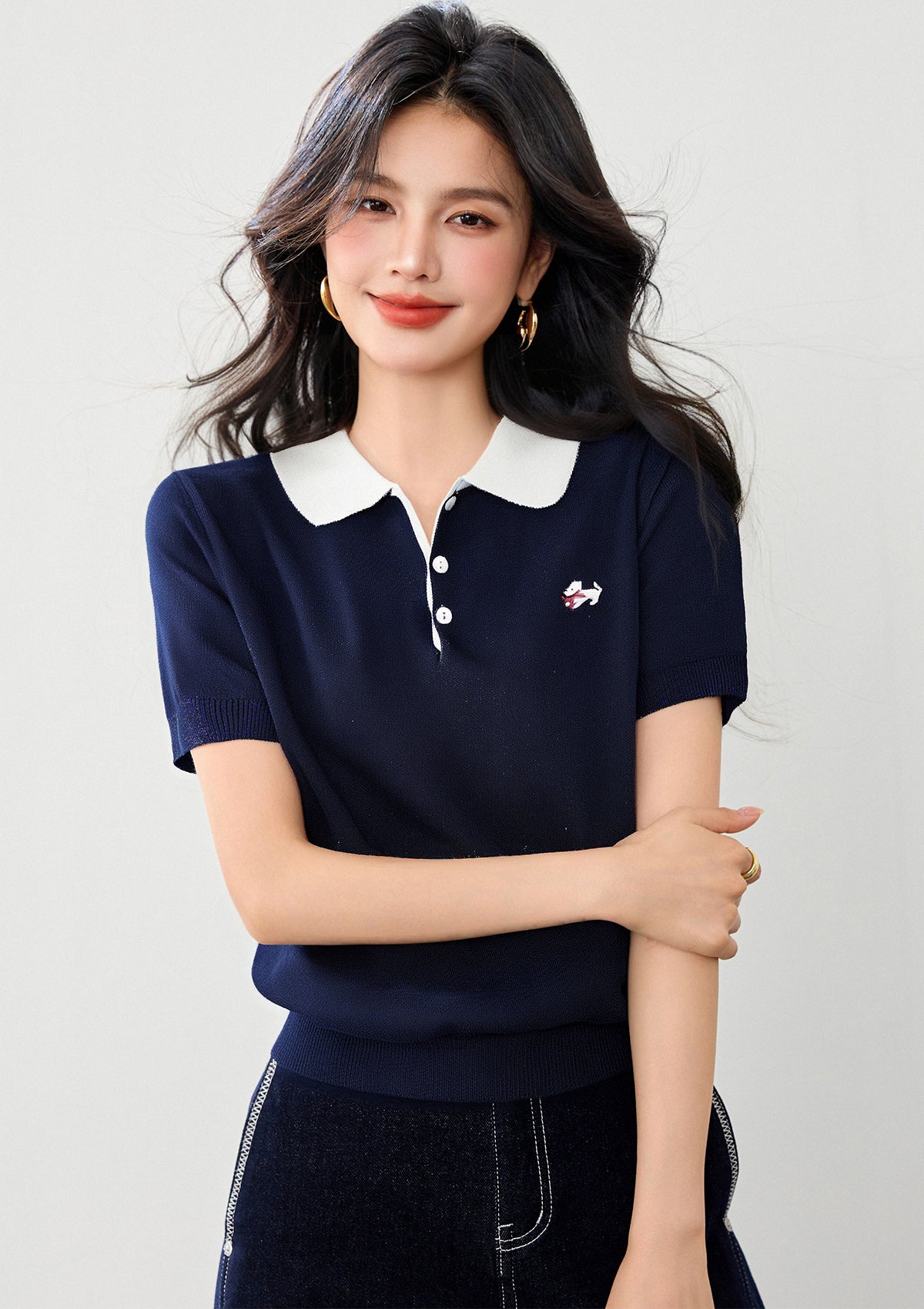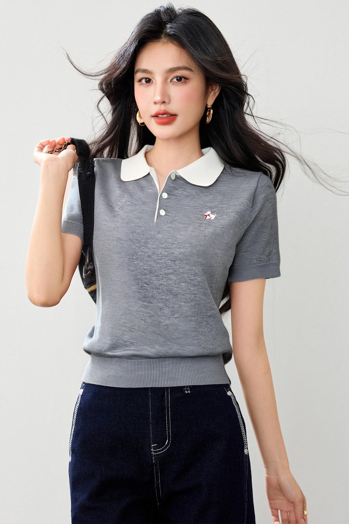 リアルショット◆在庫あり◆女性用ニットポロシャツ2025春シックデザイン半袖ボトムTシャツスモールシャツ
