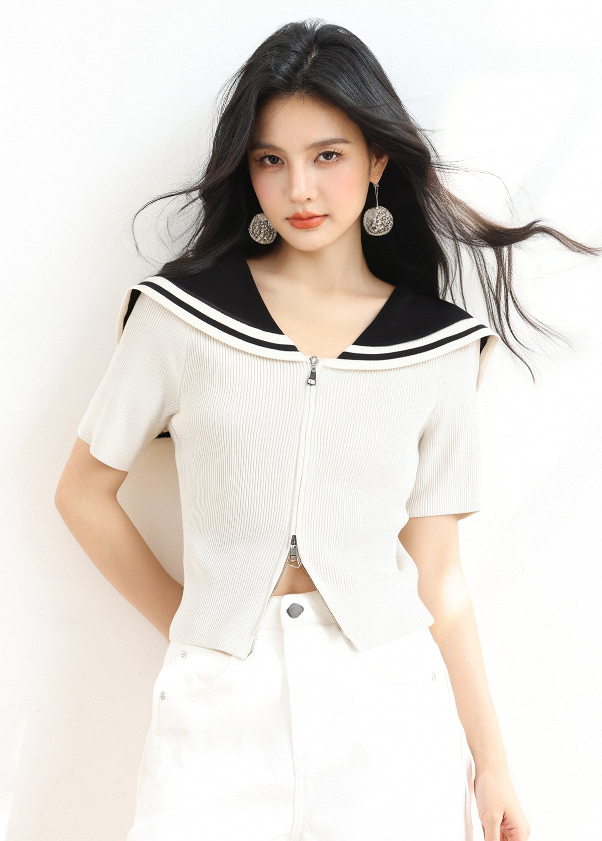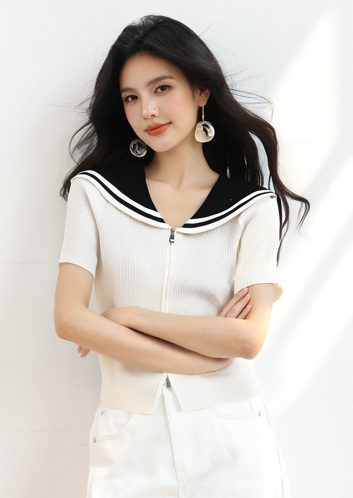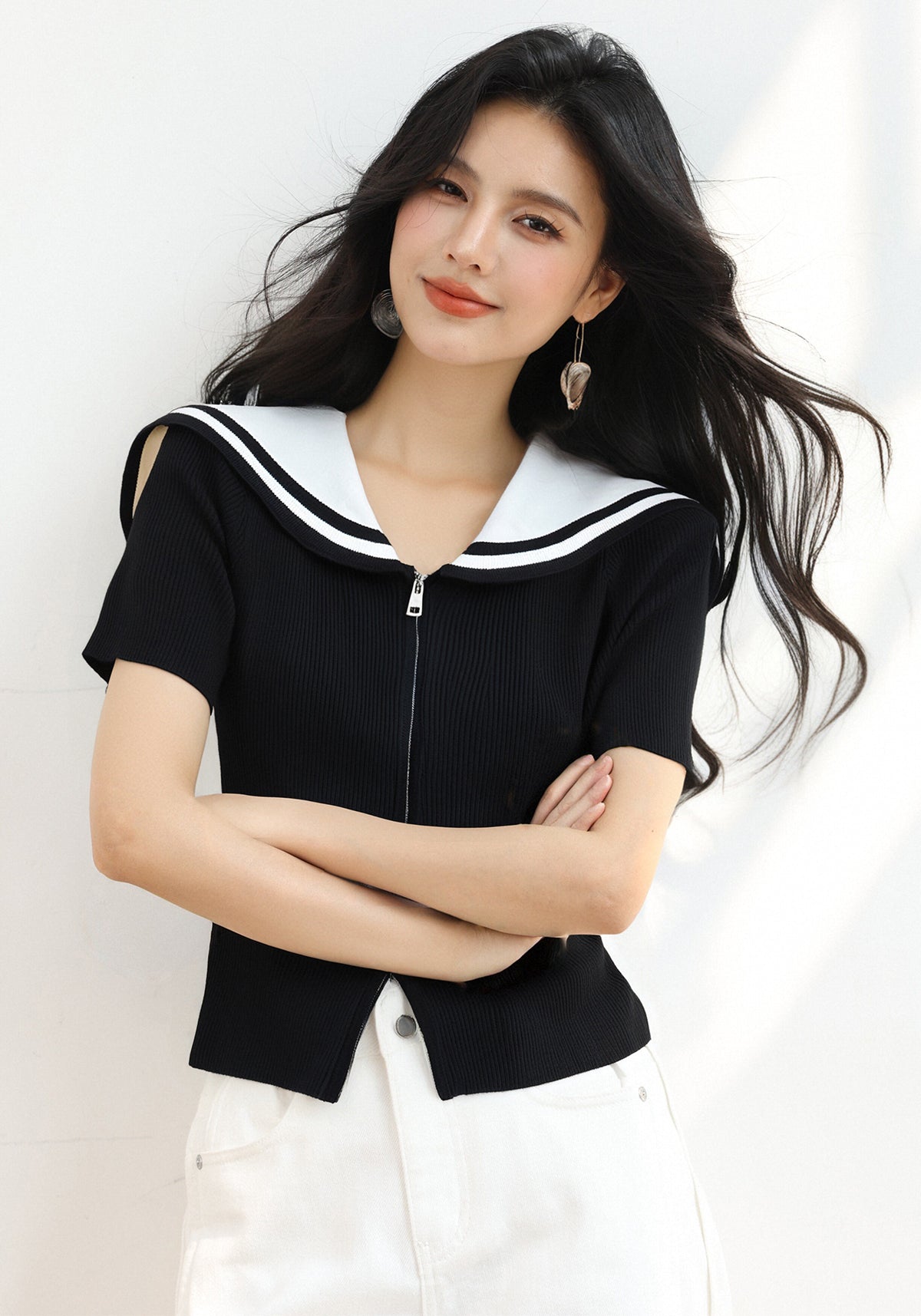 リアルショット◆在庫あり◆2025サマーネイビーカラースリムフィットスリム3/4スリーブセーター女性用