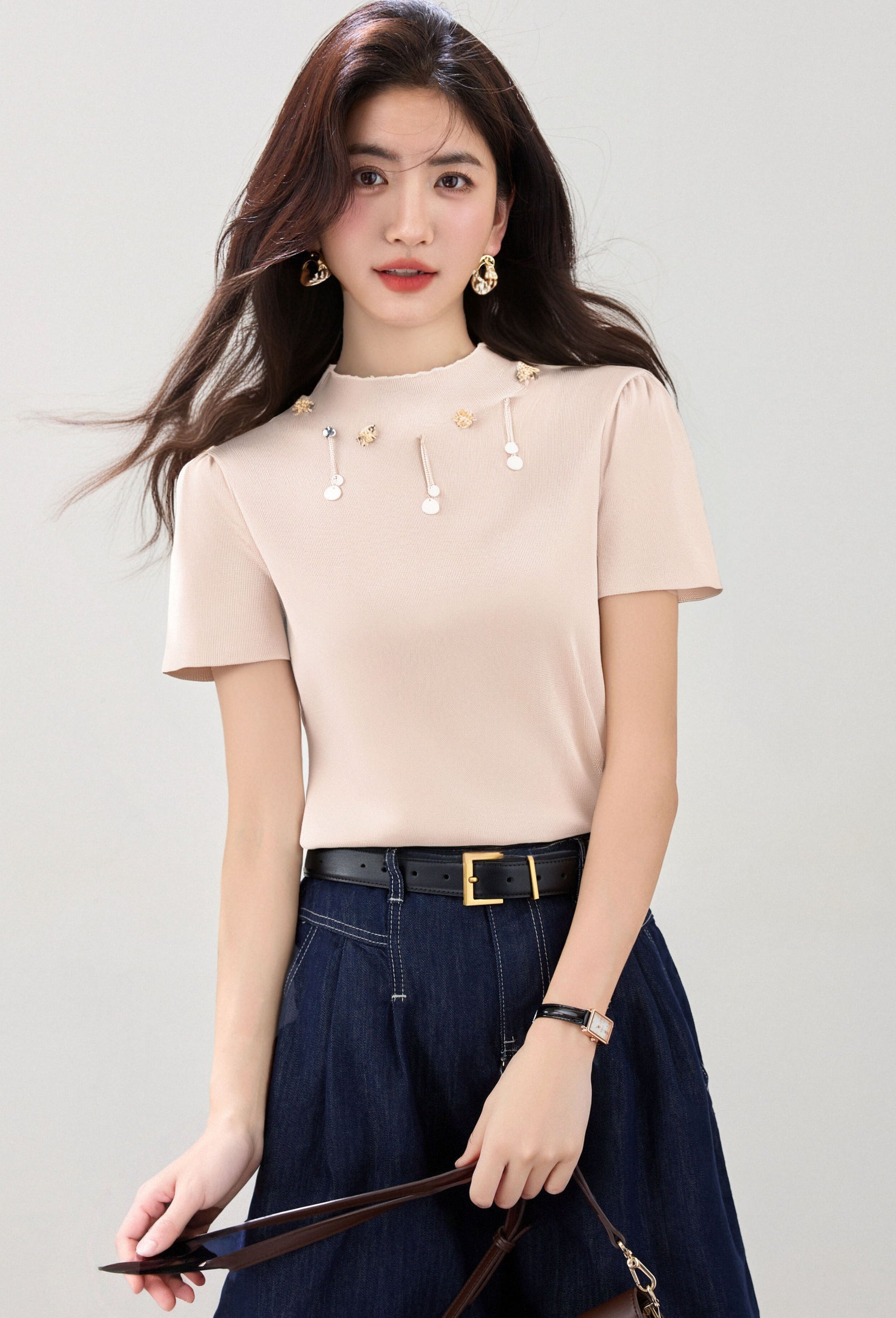 リアルショット◆在庫あり◆2025 ラウンドネッククールニット半袖レディース半袖トップス