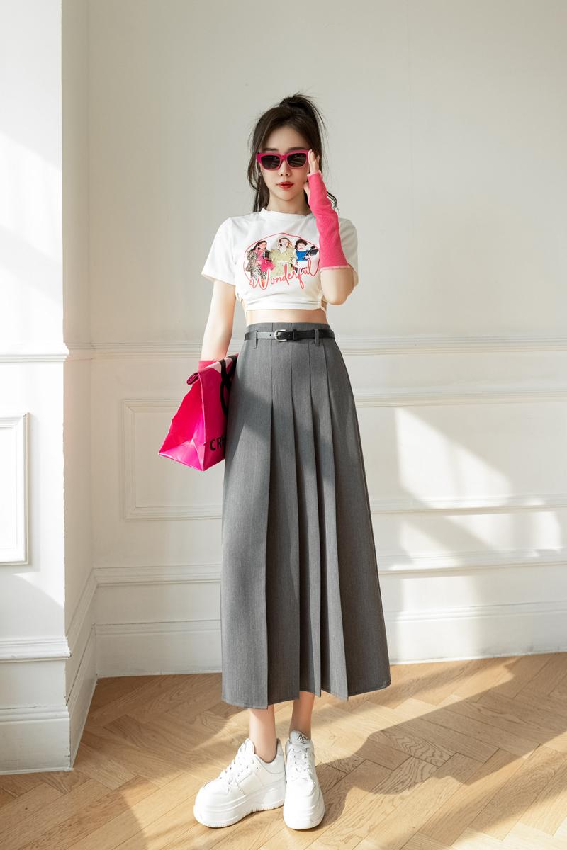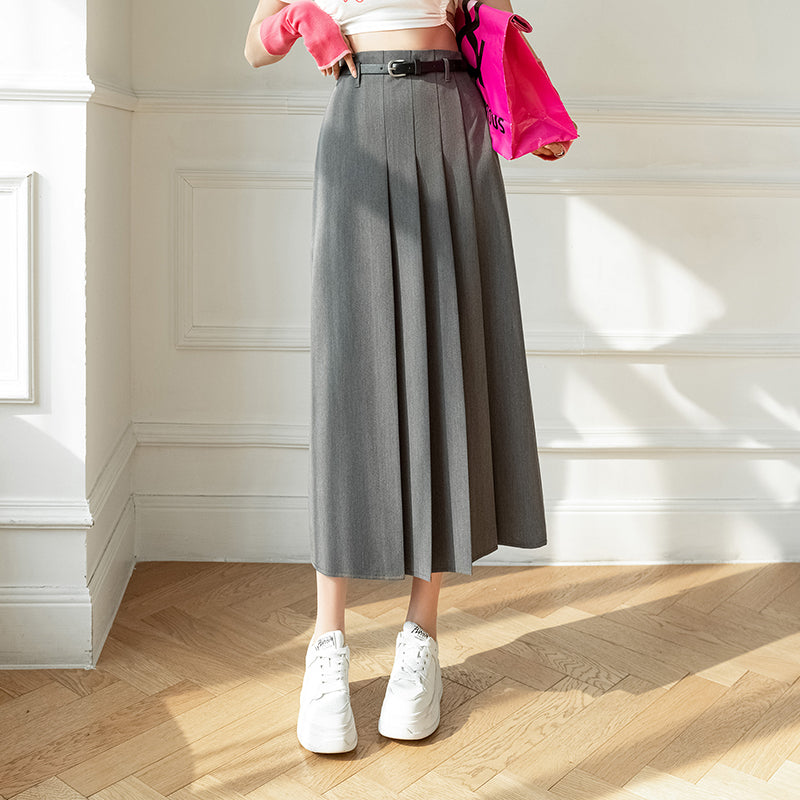 レディストックグレープリーツスカートロングドレスレディース2025春夏新作スーツドレスミドル丈ハイウエストスリムAラインスカート