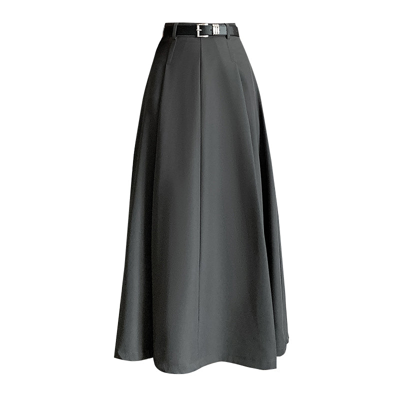 レディストックスーツスカート2025春夏ハイウエストAラインミドル丈大きい裾OL膝上傘スカートプリーツロングスカート