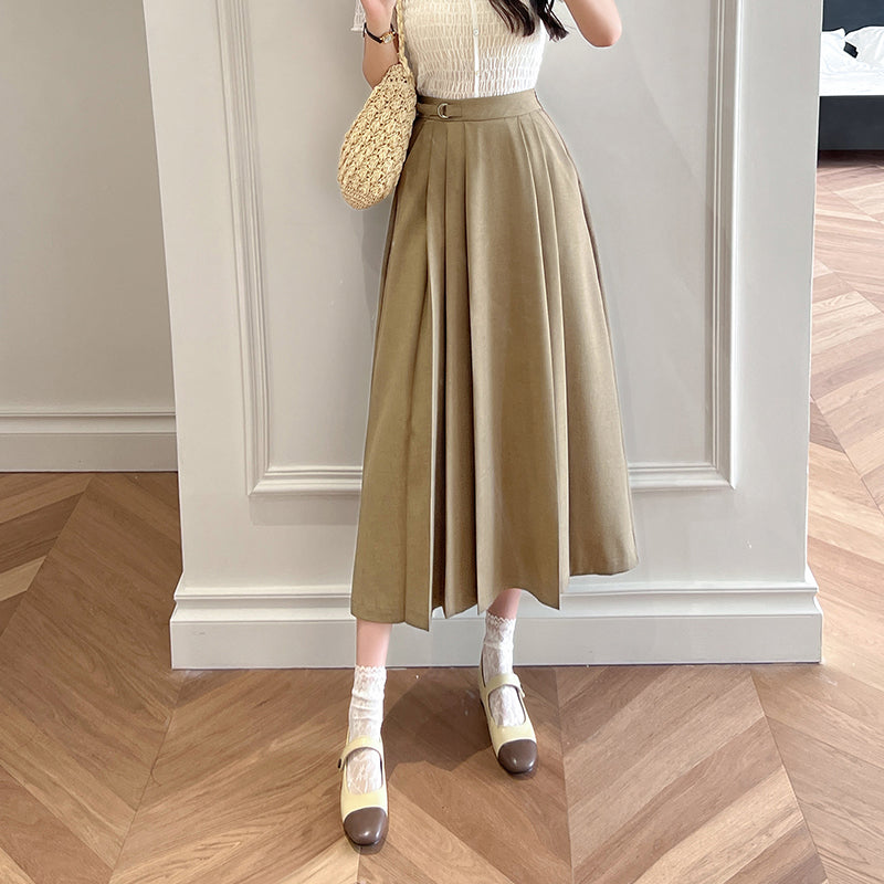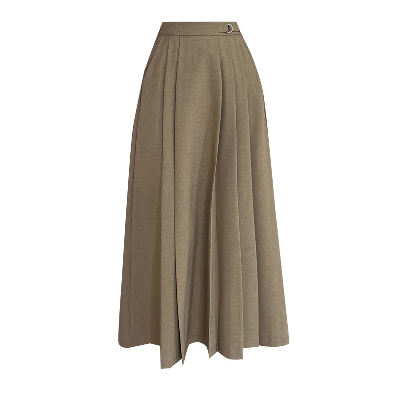 レディミドル丈スカート2025春夏プリーツスカート、ハイウエスト、スリムAラインスカート、ハーフレングス、マキシスカート、女性用