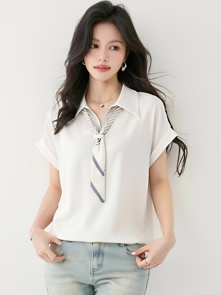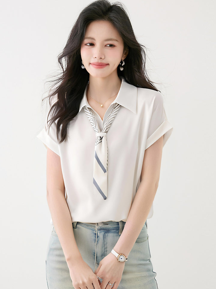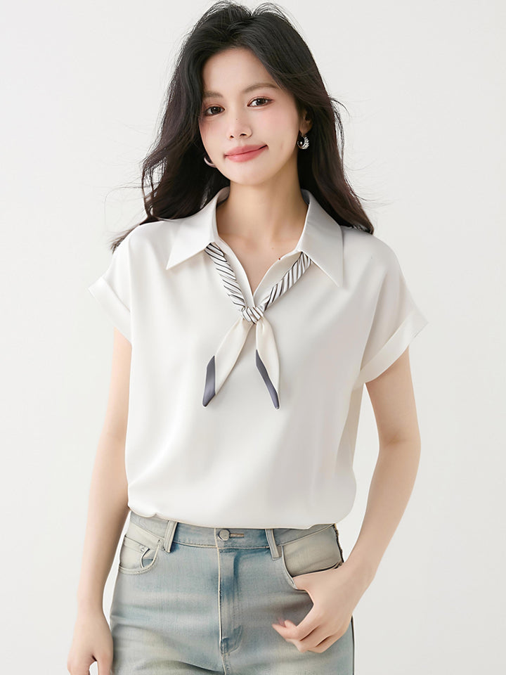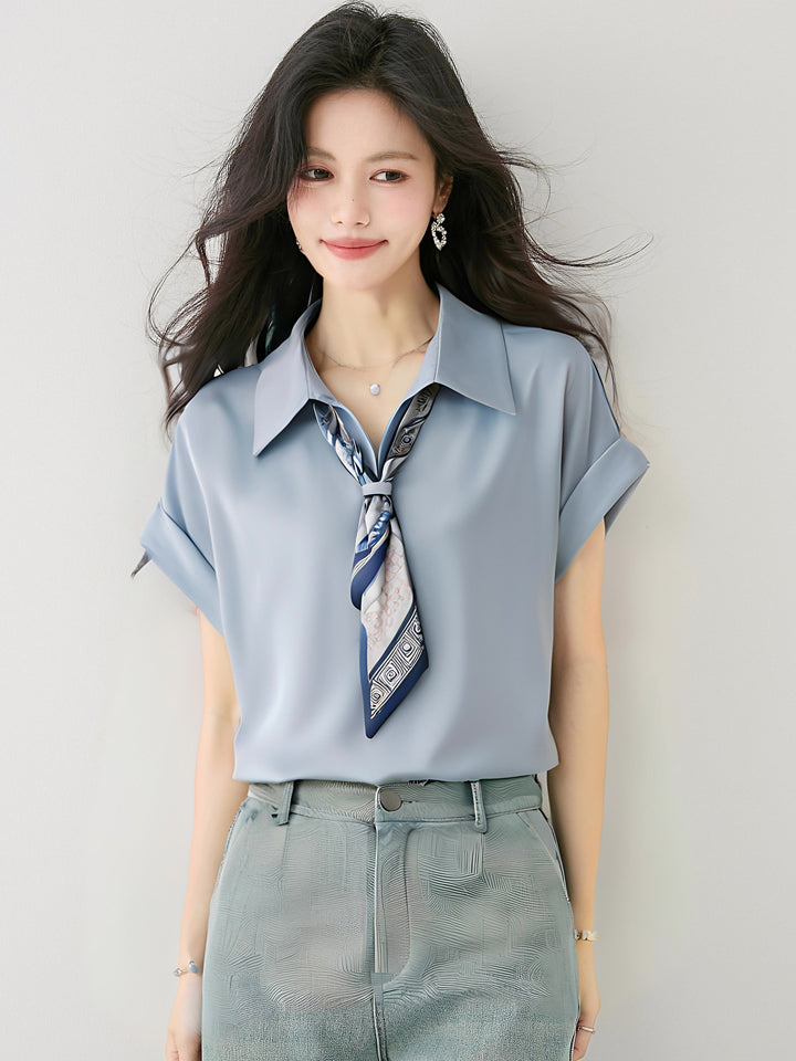 フレンチスタイルサテン半袖シャツ