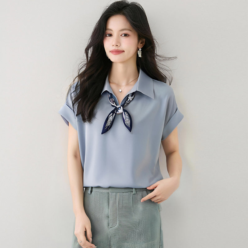 出荷済みシャツ2025新作ホットスタイルサマーフレンチスタイルサテン半袖シャツプロフェッショナルコミュータートップ