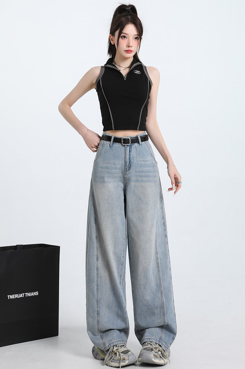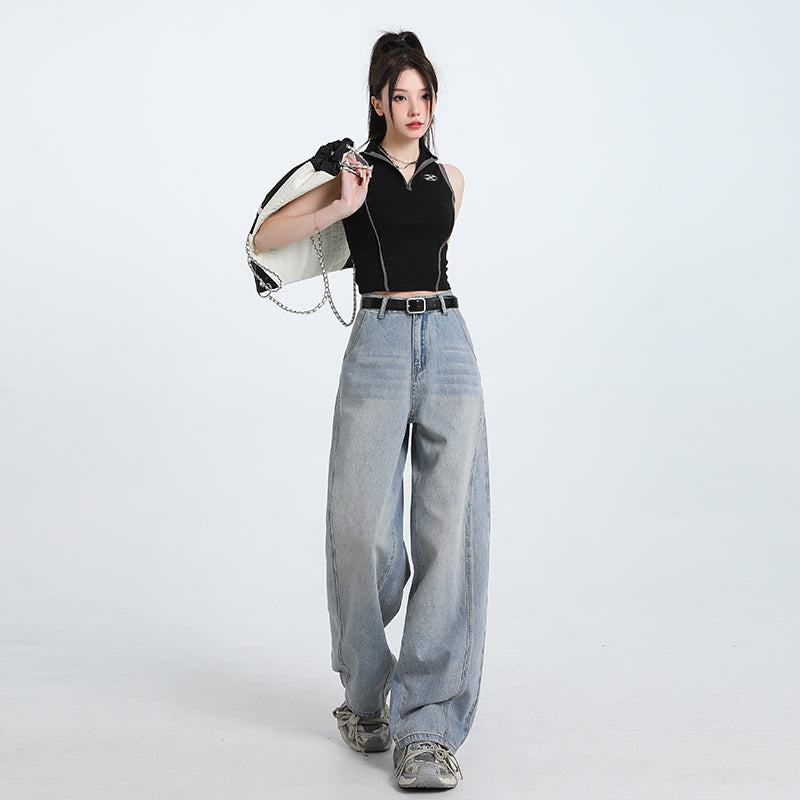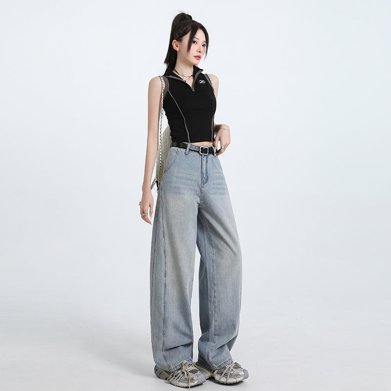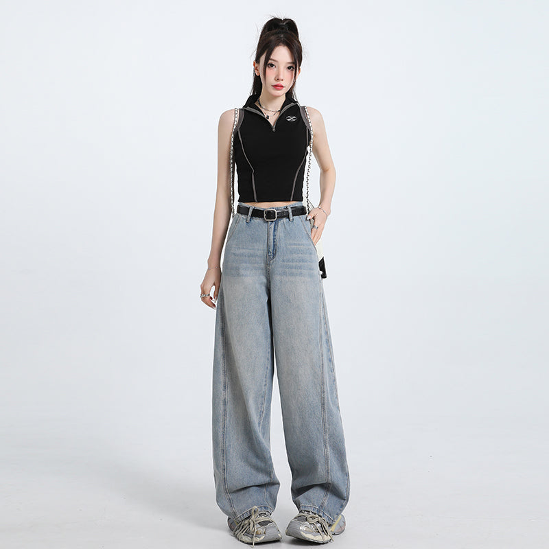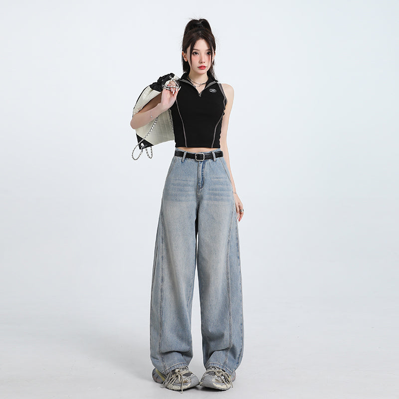 薄手のサマーシーソルトシリーズ〜カジュアルシザージーンズスプリットルーズワイドレッグバナナグラニーパンツ